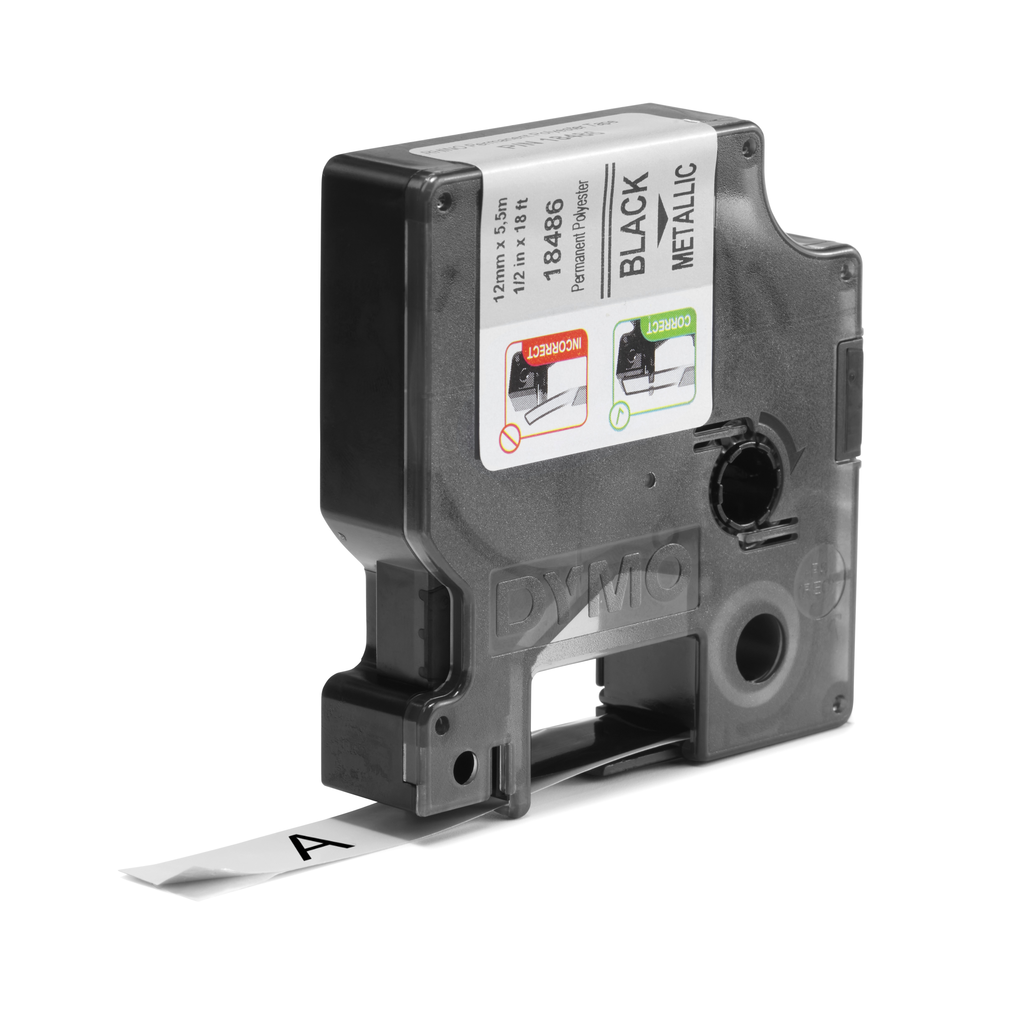 DYMO Rhino industriële labels | Permanent Polyester | 12 mm x 3,5 m | zwarte afdruk op metallic | zelfklevende labels voor Rhino & LabelManager labelprinters