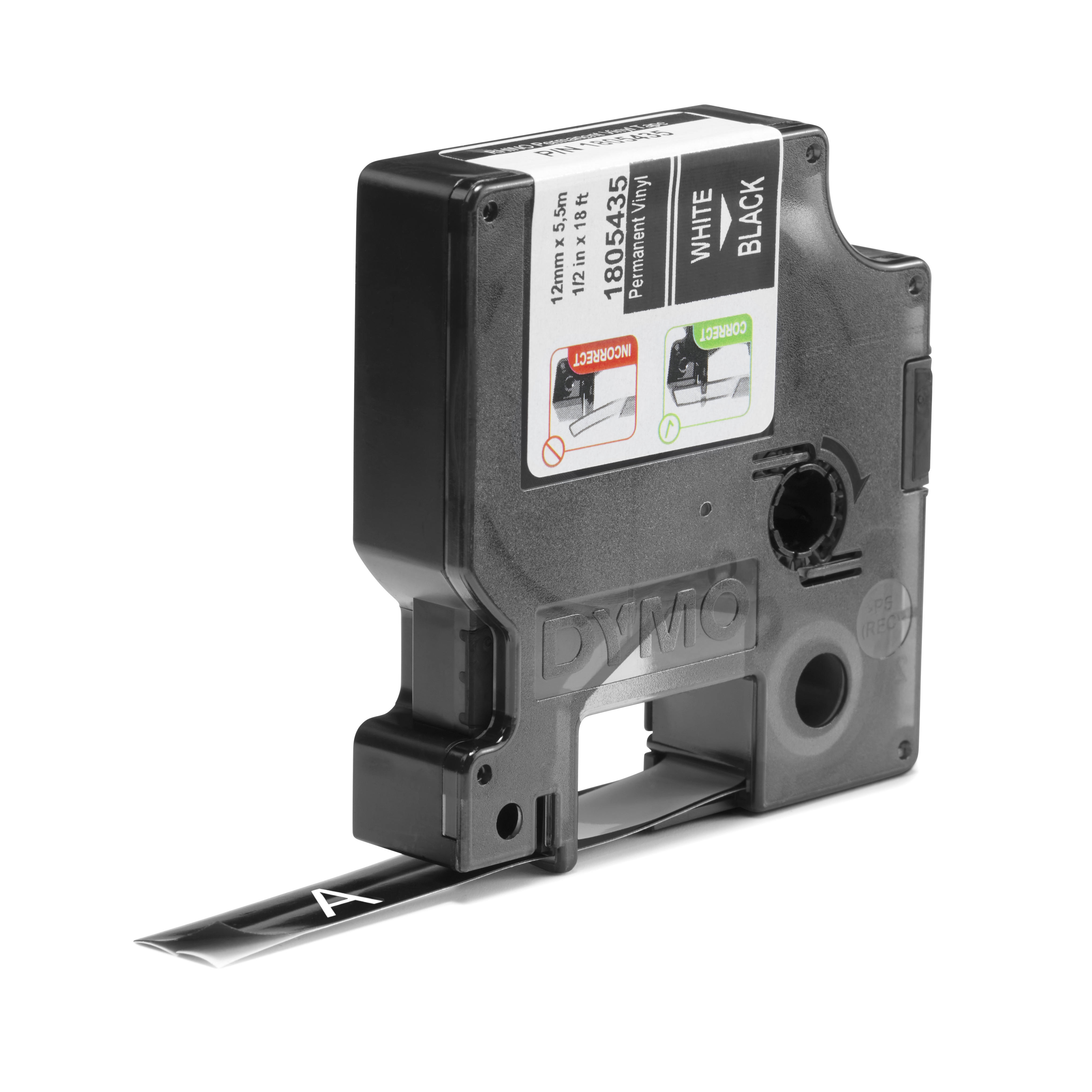DYMO Rhino industriële Vinyl Labels | 12 mm x 5,5 m | witte afdruk op zwart | zelfklevende labels voor Rhino & LabelManager labelprinters, Wit op zwart, Meerkleurig, Vinyl, -40 - 80 °C, UL 969, DYMO