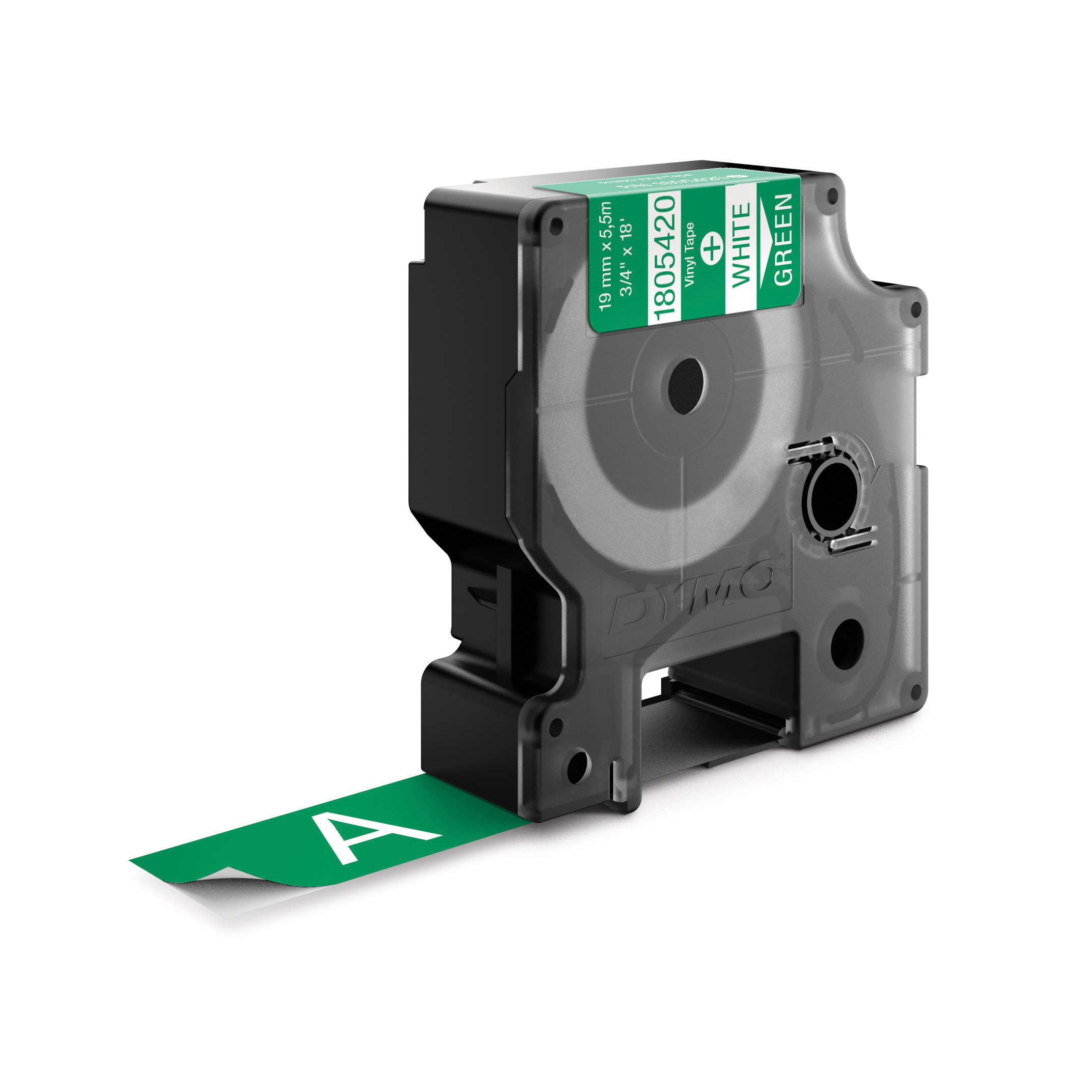DYMO Rhino industriële Vinyl Labels | 19 mm x 5,5 m | witte afdruk op groen | zelfklevende labels voor Rhino & LabelManager labelprinters, Wit op groen, Meerkleurig, Vinyl, -40 - 80 °C, UL 969, DYMO