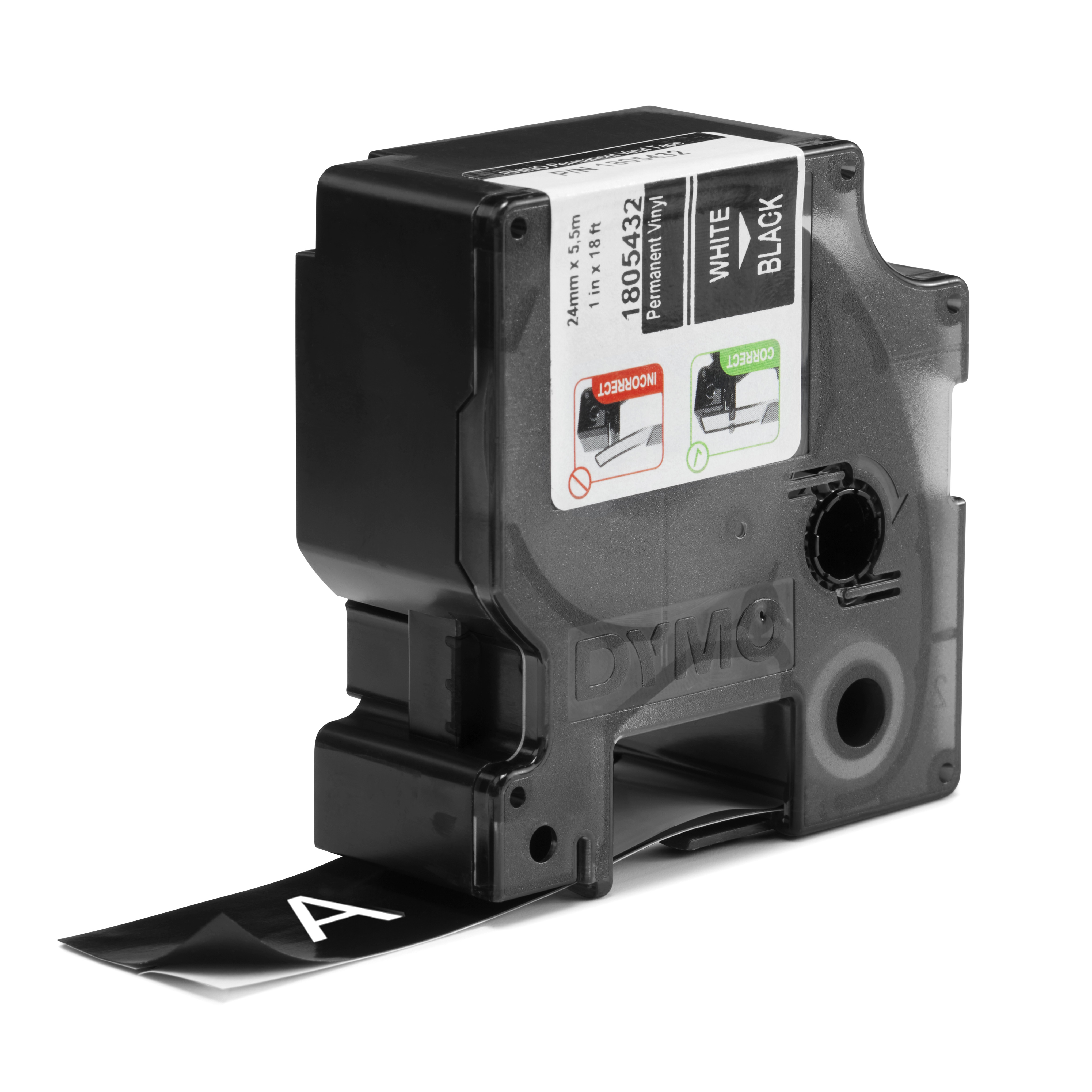 DYMO Rhino industriële Vinyl Labels | 24 mm x 5,5 m | witte afdruk op zwart | zelfklevende labels voor Rhino & LabelManager labelprinters, Wit op zwart, Meerkleurig, Vinyl, -40 - 80 °C, DYMO, Rhino