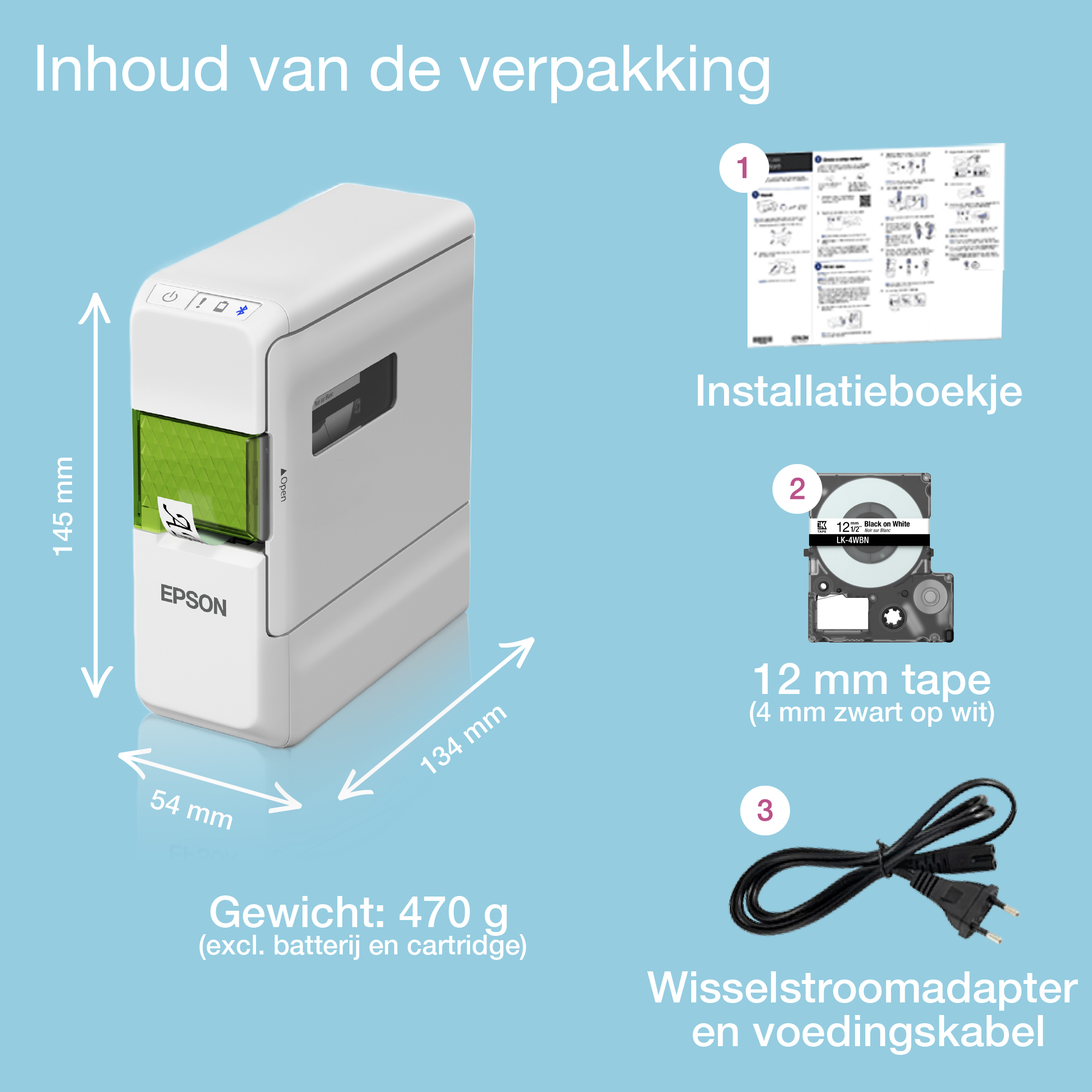 Epson LabelWorks LW-C410 lichtgewicht labelprinter, Thermo transfer, 180 x 180 DPI, 9 mm/sec, Draadloos, Wit