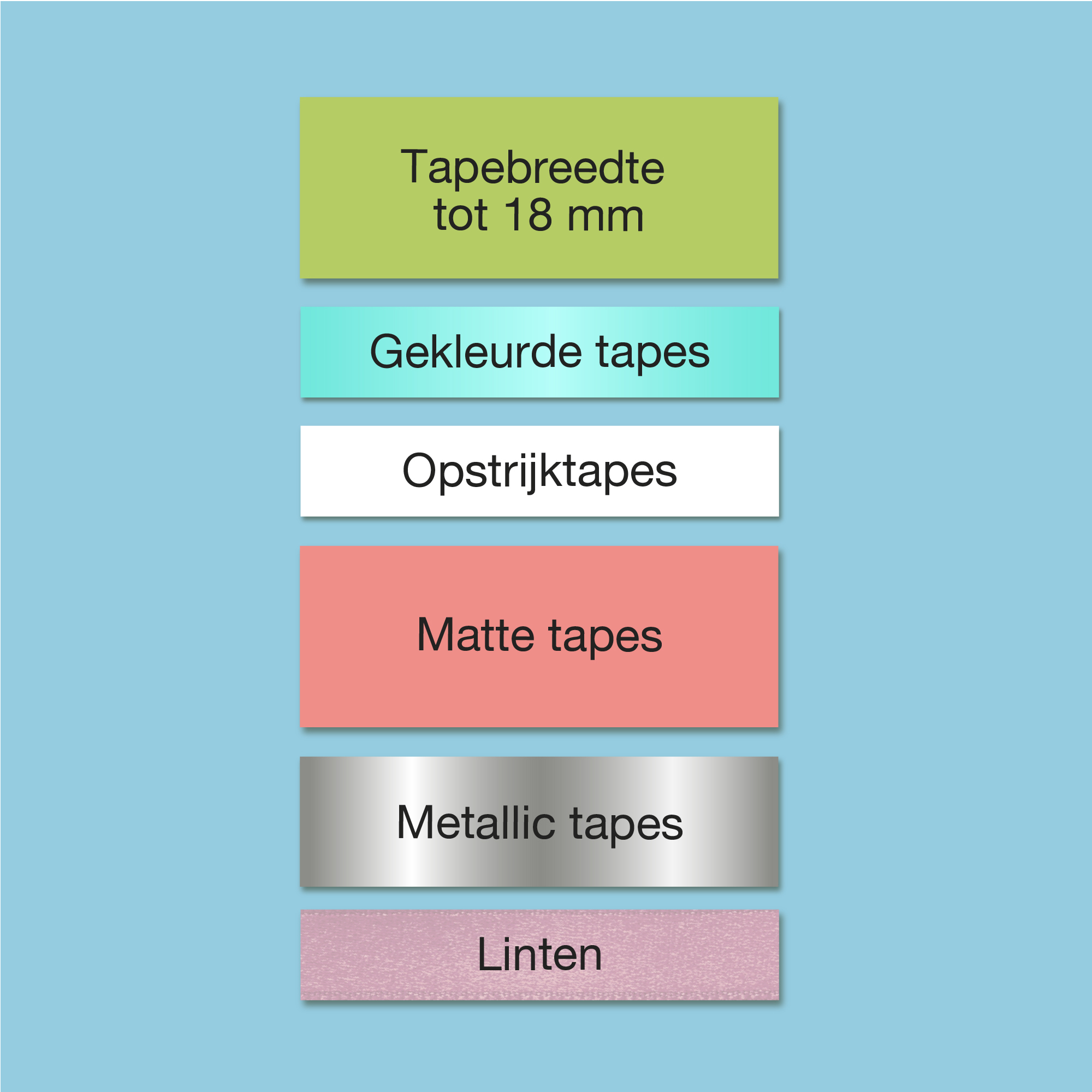 De LW-C410 werkt met 36 tapes en linten in een breed scala aan kleuren en afwerkingen en biedt u indrukwekkend veelzijdige prints. Met een breedte tot 18 mm en een resolutie van 180 dpi kunnen gebruikers QR-codes, afbeeldingen, originele ontwerpen en meer printen. Zo maakt u thuis heel eenvoudig uw eigen labels en prachtige cadeaus.