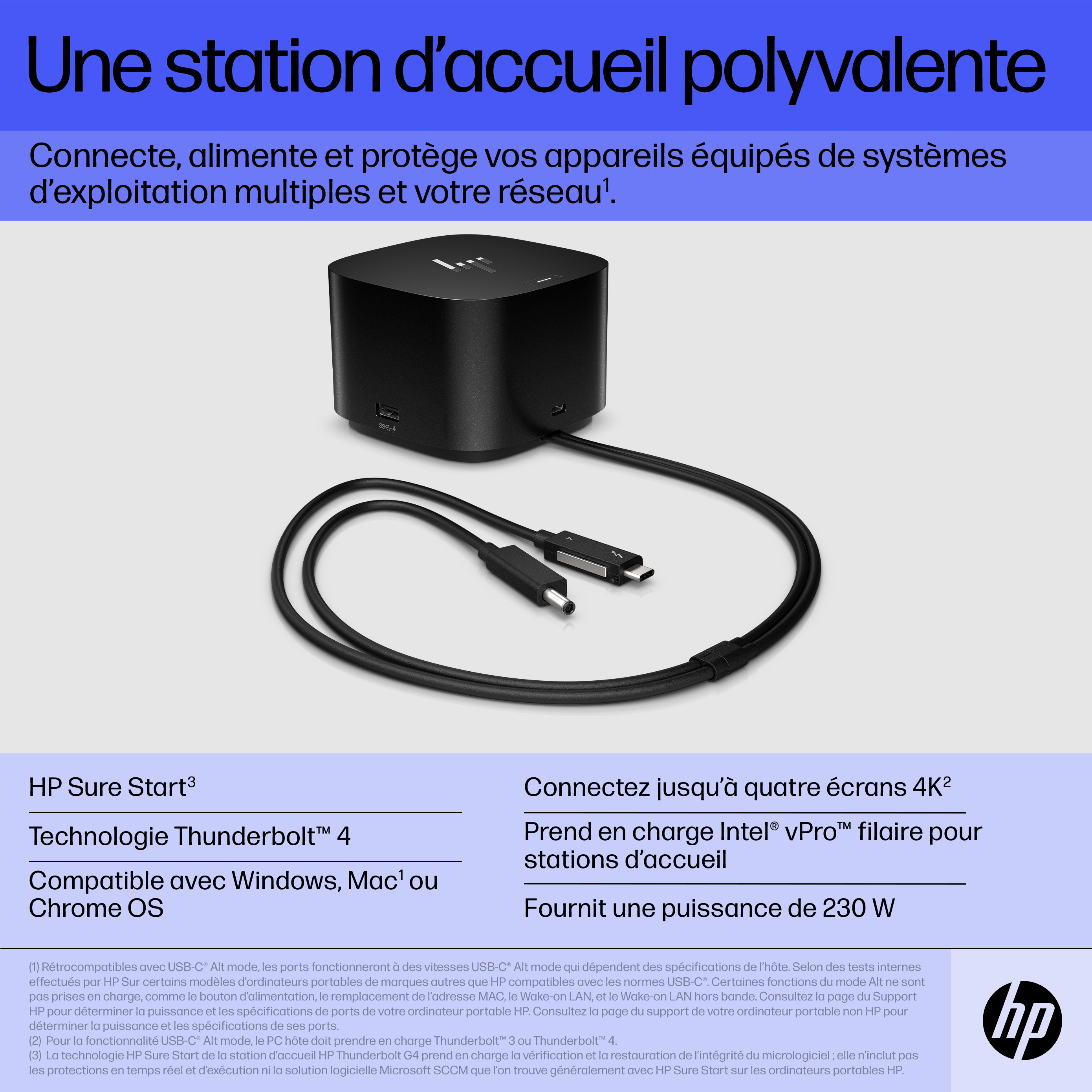 HP Thunderbolt Dock 280W G4 met combokabel, Bedraad, Thunderbolt 4, Zwart, Kensington, China, Taiwan, 100 - 240 V