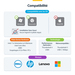 Configuratie zonder drivers met native ondersteuning voor Windows en ChromeOS (niet compatibel met macOS). Ingebouwde veiligheidsslots en VESA- of tafel montageopties (accessoires apart verkrijgbaar) zorgen voor een veilige en flexibele installatie.