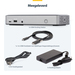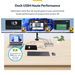 Het dock biedt drie video outputs (HDMI of DisplayPort), vier USB-A poorten (10Gbps), twee USB-C-poorten (10Gbps en 5Gbps) en kan tot 100W stroom leveren voor het opladen van het hostapparaat. Een 180W power adapter zorgt ervoor dat alle poorten op volle capaciteit kunnen werken.