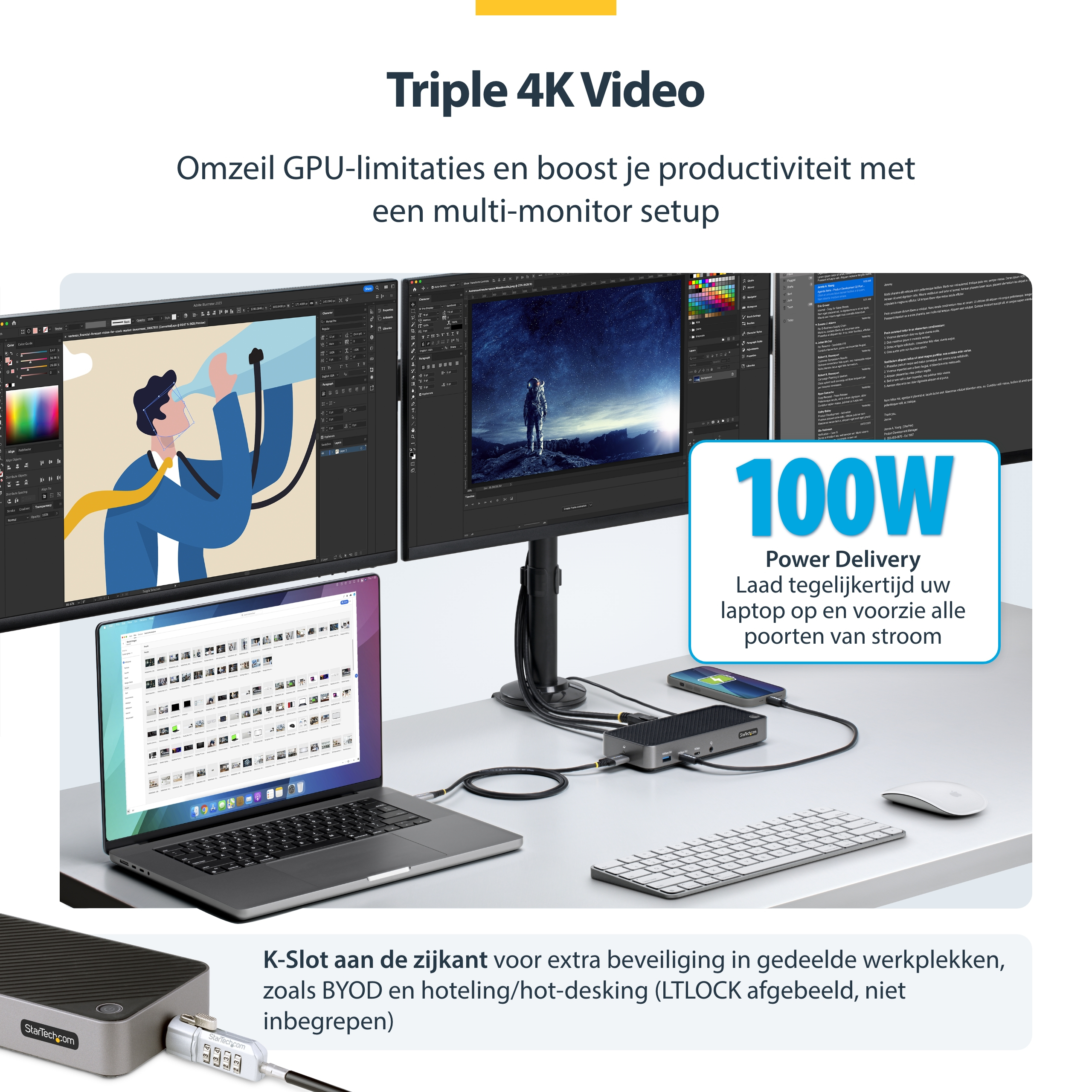 StarTech USB-C Triple Monitor Docking Station - HDMI/DP Triple 4k Dock - 5x USB Hub - GbE - 100W PD - Universeel Multi Monitor Docking Station - Thunderbolt 3/4 Compatibel (116E-USBC-DOCK)