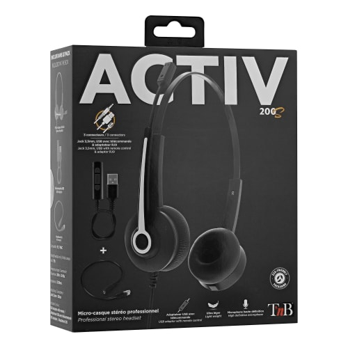 T'nB ACTIV 200S. Type product: Headset. Connectiviteitstechnologie: Bedraad. Aanbevolen gebruik: Kantoor/callcenter. Frequentiebereik koptelefoon: 100 - 16000 Hz. Gewicht: 89 g. Kleur van het product: Zwart
