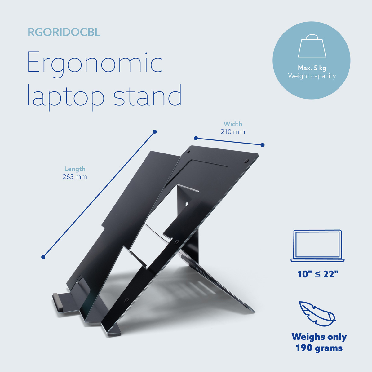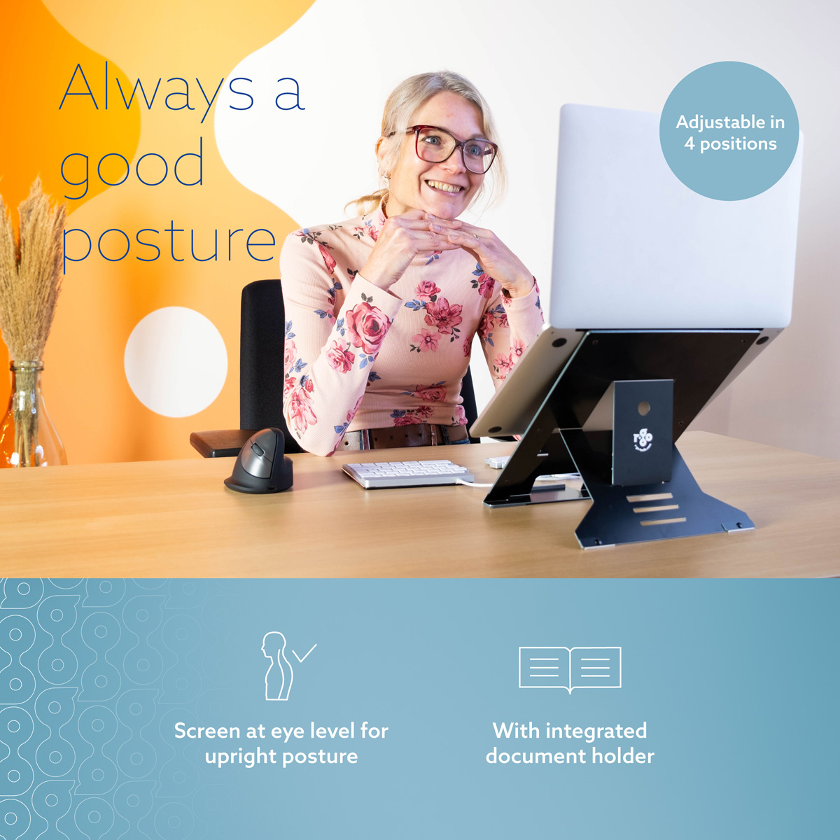 De R-Go Riser Document laptopstandaard brengt elk laptop beeldscherm eenvoudig op ooghoogte. Zo staat je hoofd in een natuurlijke stand en vermindert de spanning in je nek- en schouderspieren. Werk je met papier, dan kun je deze eenvoudig op de documenthouder plaatsen. Zo blijf je steeds in een rechte houding. Deze laptopverhoger is eenvoudig in hoogte verstelbaar in 5 standen. De R-Go Riser is gemaakt van aluminium en heeft een strak design. De Riser is ultradun en licht van gewicht: ideaal om mee te nemen in je tas!