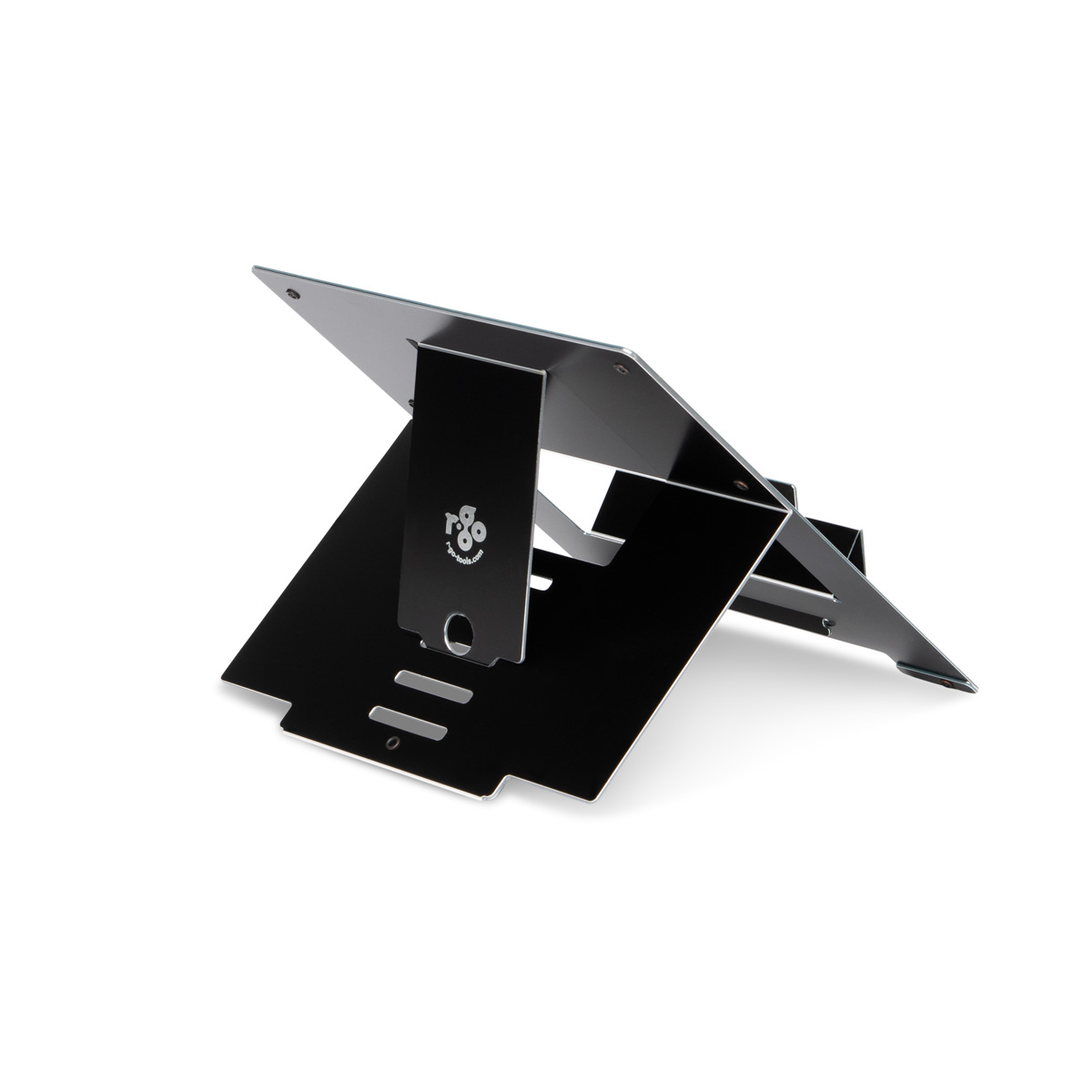 Laptopstandaard R-Go Riser Flexible, ergonomisch, verstelbare inklapbare laptopverhoger, Hylite aluminium, zwart