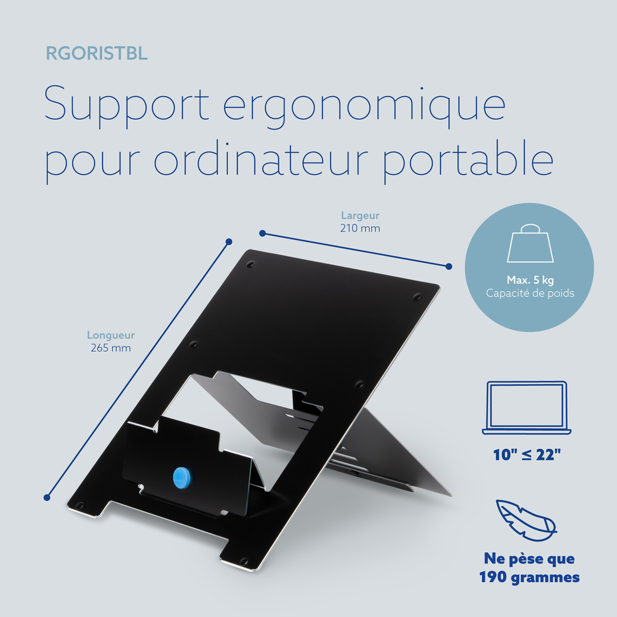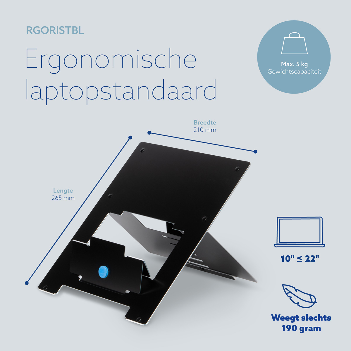 De R-Go Riser laptopstandaard brengt elk laptopbeeldscherm eenvoudig op ooghoogte. Zo staat je hoofd in een natuurlijke stand en vermindert de spanning in je nek- en schouderspieren. Deze laptopverhoger is eenvoudig in hoogte verstelbaar in 5 standen. De R-Go Riser is gemaakt van aluminium en heeft een strak design. De Riser is ultradun en licht van gewicht: ideaal om mee te nemen in je tas!