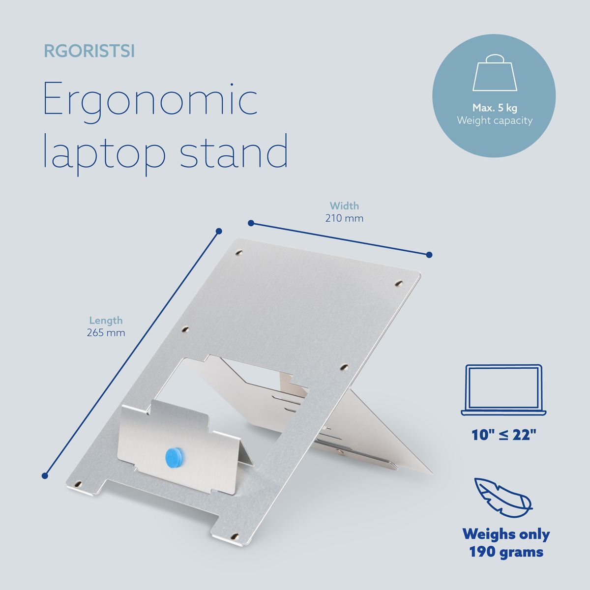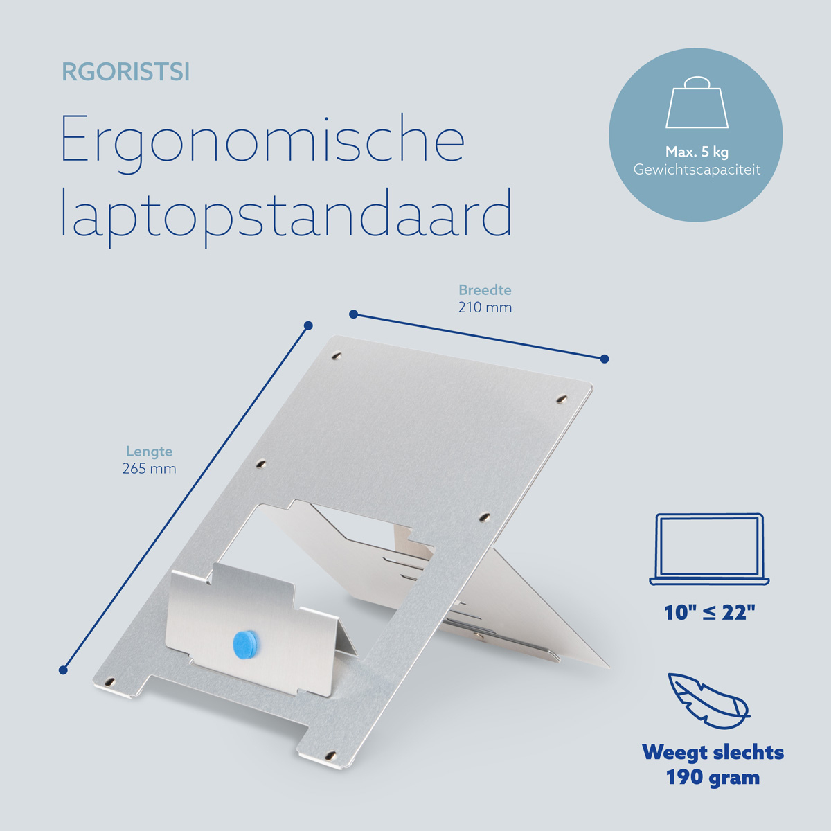 De R-Go Riser laptopstandaard brengt elk laptopbeeldscherm eenvoudig op ooghoogte. Zo staat je hoofd in een natuurlijke stand en vermindert de spanning in je nek- en schouderspieren. Deze laptopverhoger is eenvoudig in hoogte verstelbaar in 5 standen. De R-Go Riser is gemaakt van aluminium en heeft een strak design. De Riser is ultradun en licht van gewicht: ideaal om mee te nemen in je tas!