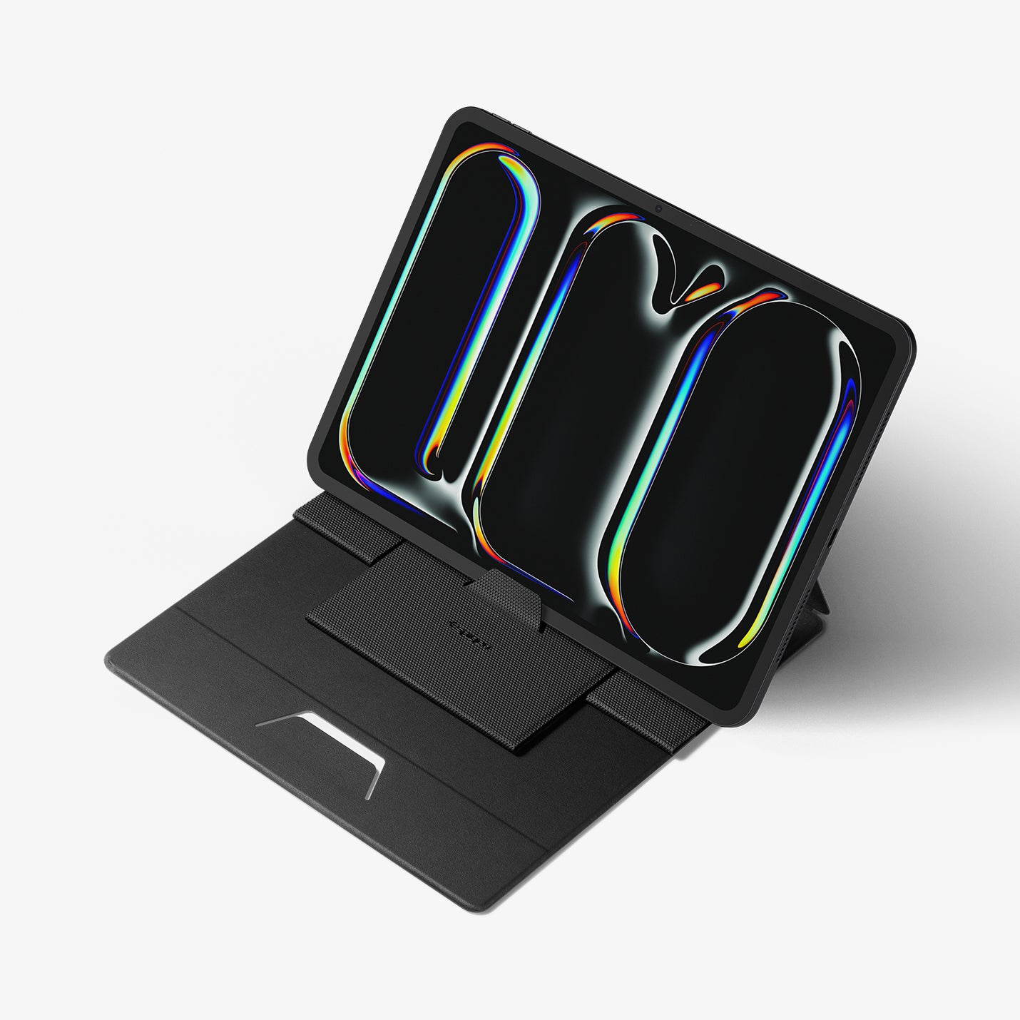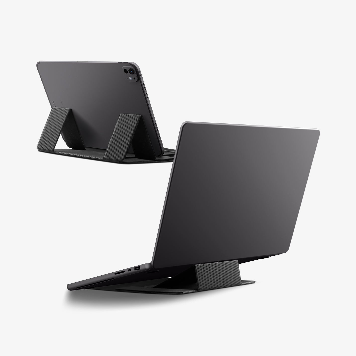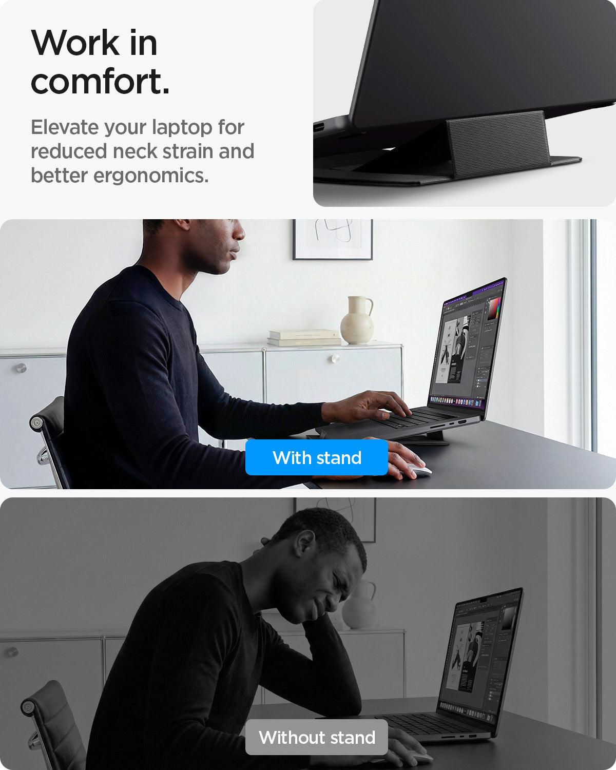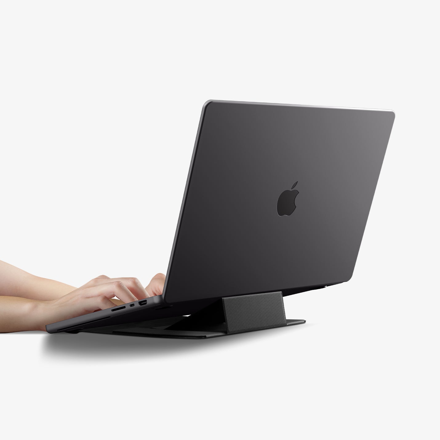 Spigen AMP11117. Type product: Laptopstandaard, Kleur van het product: Zwart, Materiaal: Polyurethaan (PU)