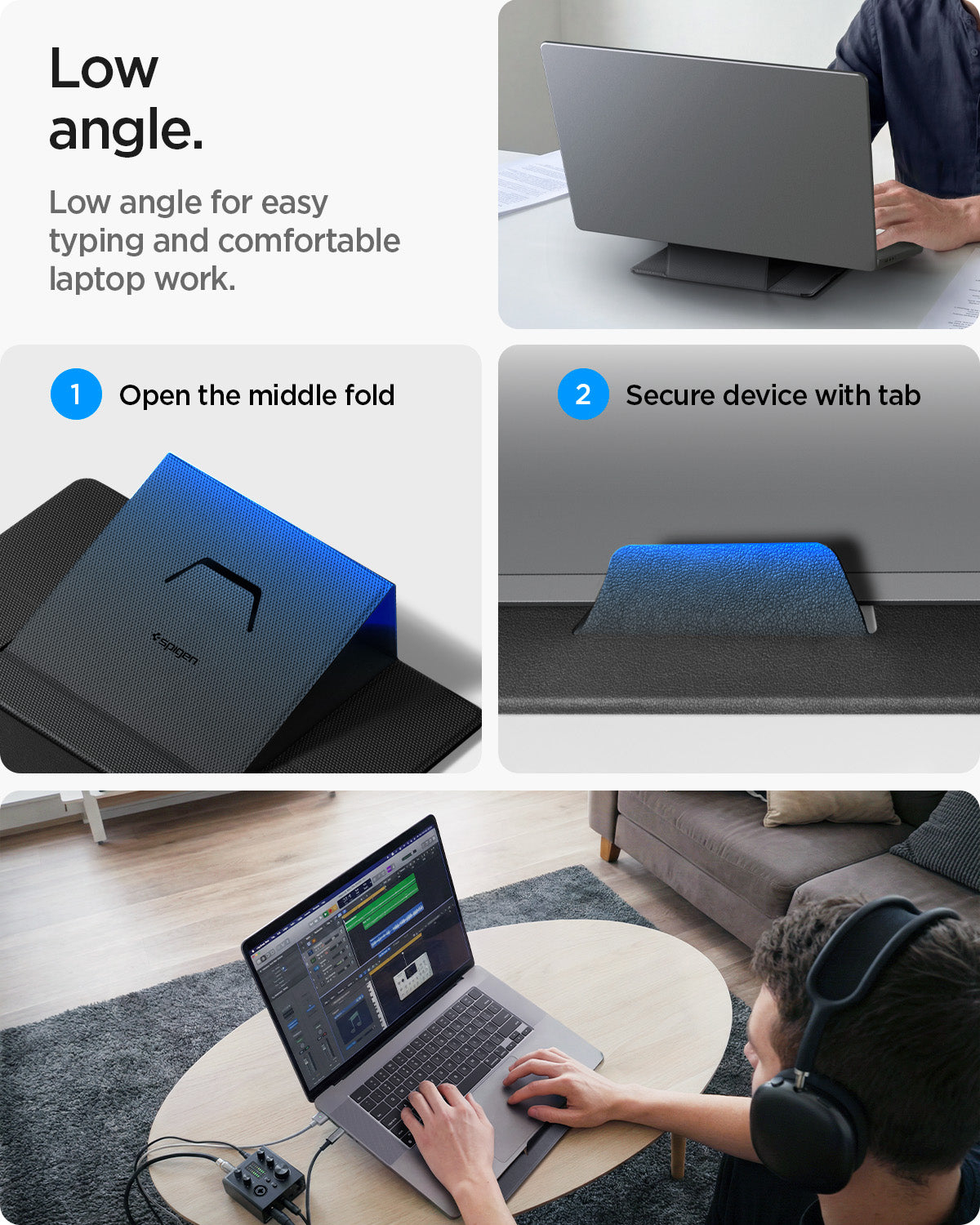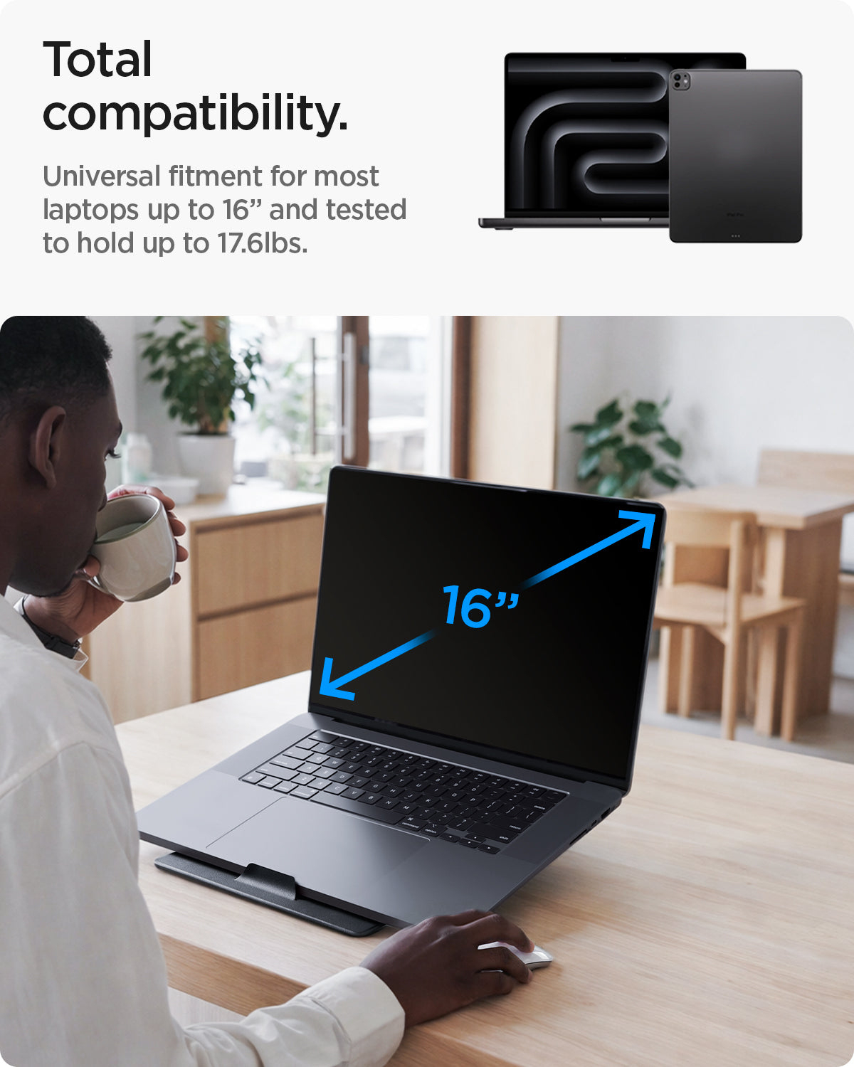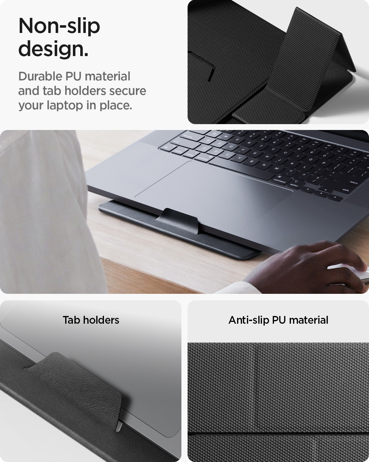 Spigen AMP11117, Laptopstandaard, Zwart, Polyurethaan (PU), 40,6 cm (16")