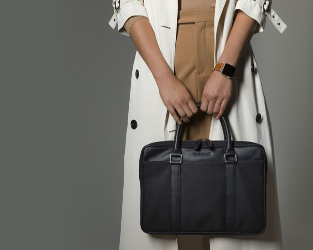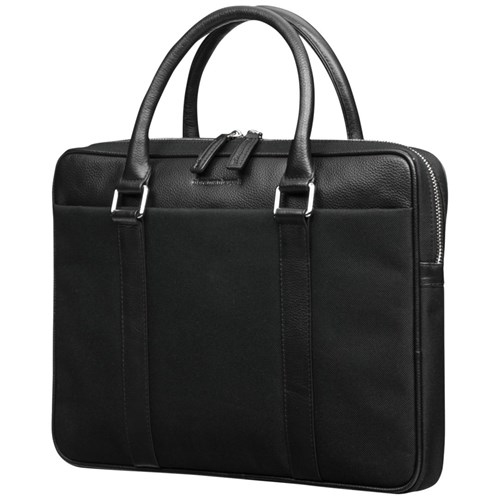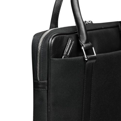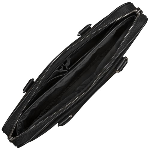 Een uitzonderlijk praktisch zakelijk laptop-tas, voorzien van zilverkleurige hardware, een veilige dubbele ritssluiting en een extra beschermend laptop-compartiment voor tot maximaal 14" (slanke) laptops.