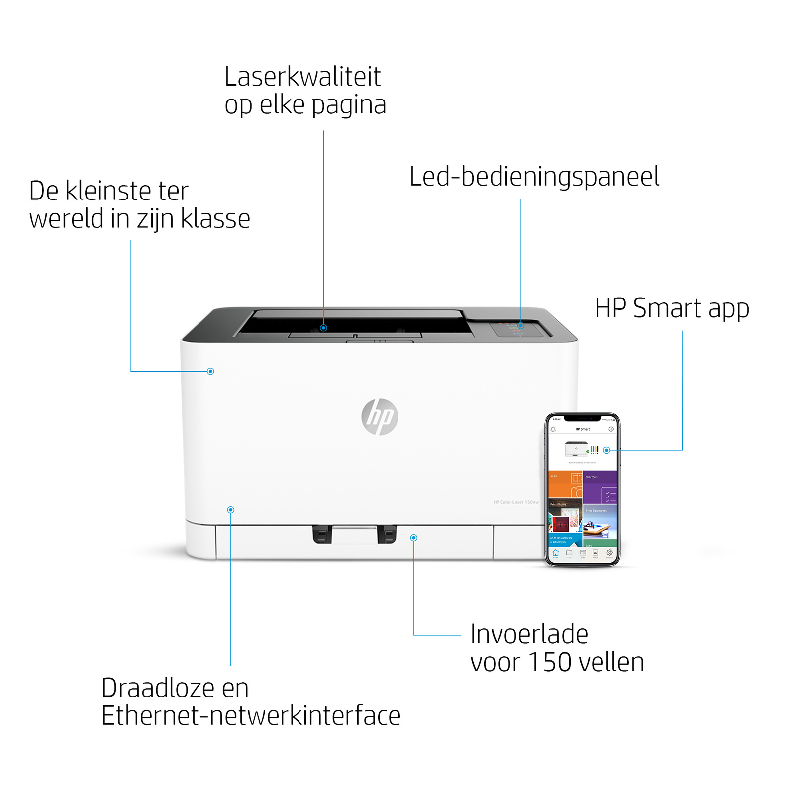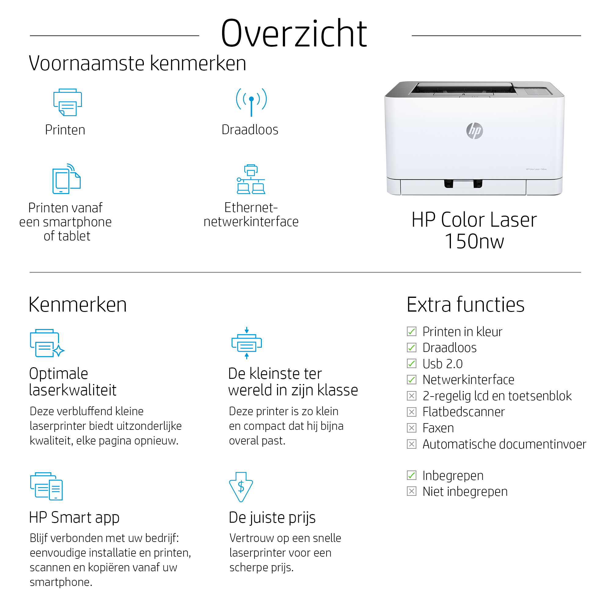 HP Color Laser 150nw, Laser, Kleur, 600 x 600 DPI, A4, 18 ppm, Duplex printen