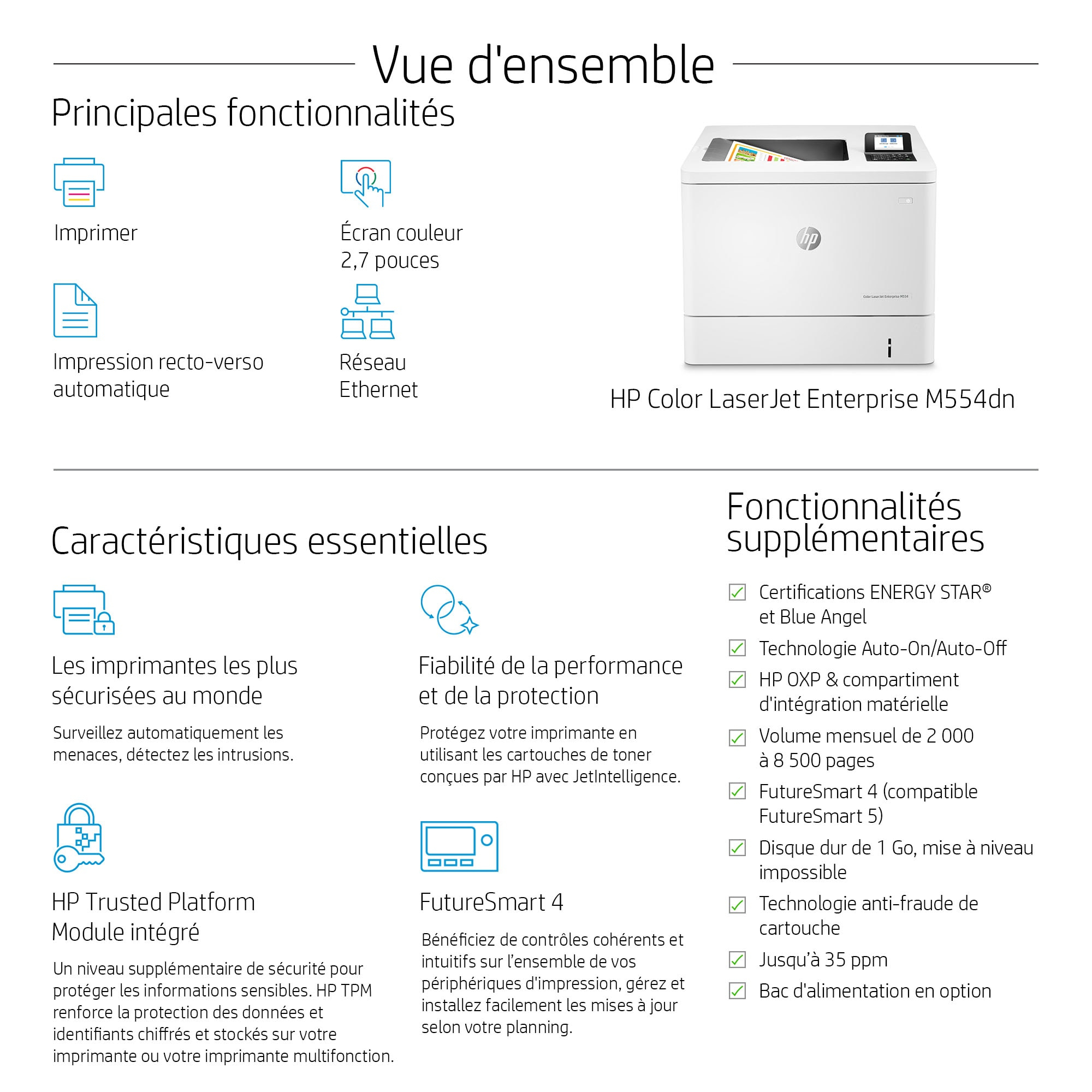 HP Color LaserJet Enterprise M554dn printer, Laser, Kleur, 1200 x 1200 DPI, A4, 33 ppm, Duplex printen