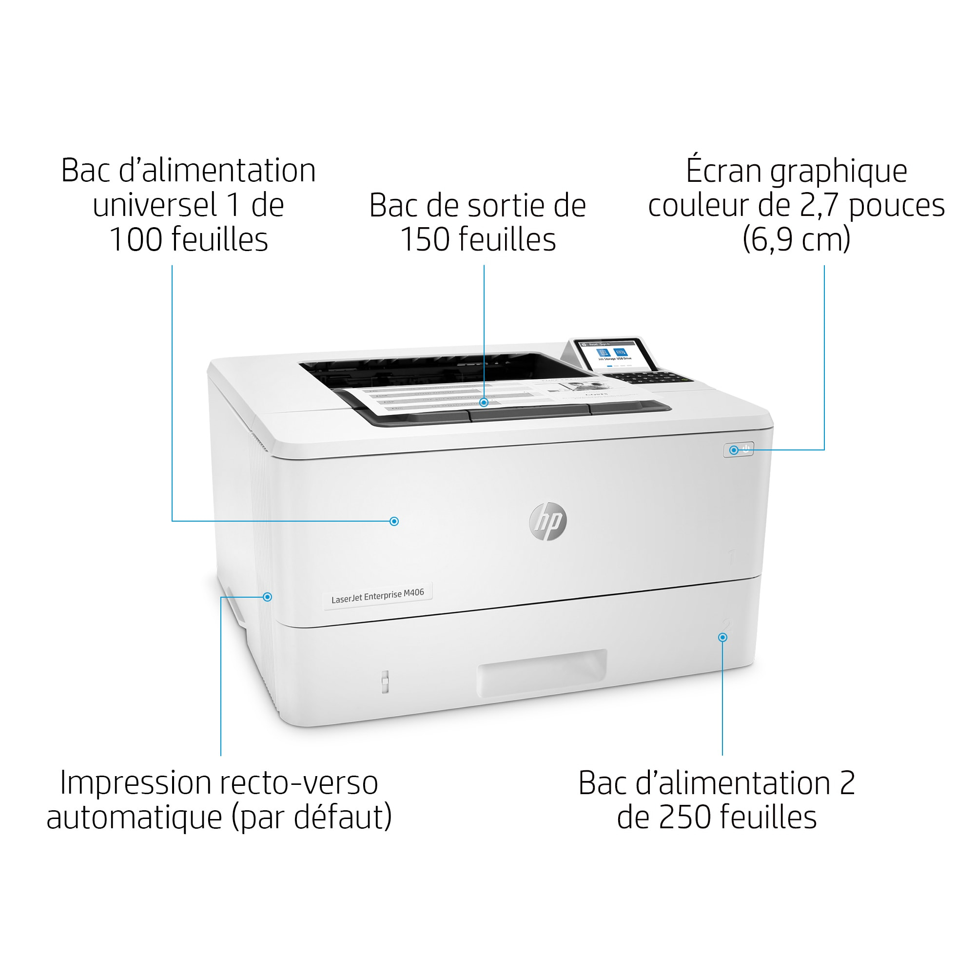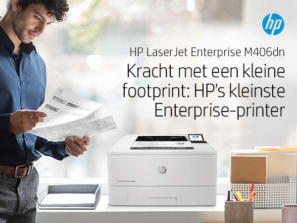 HP LaserJet Enterprise M406dn, Laser, 1200 x 1200 DPI, A4, 38 ppm, Duplex printen, Netwerkgereed