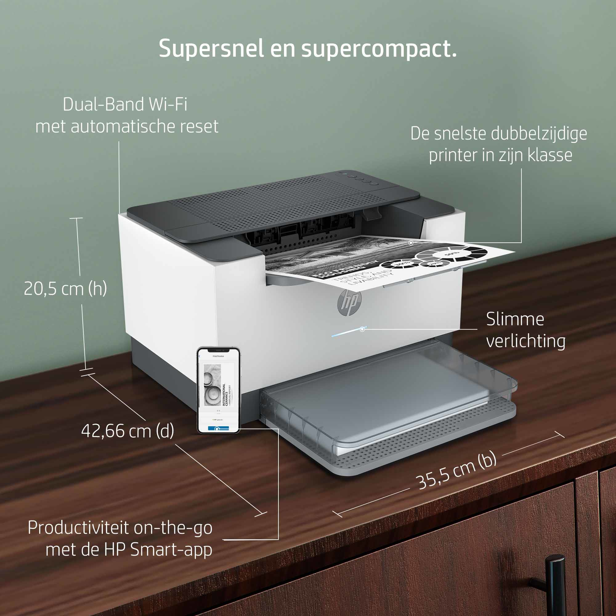 Supergeschikt voor al uw taken. Supercompact – met betrouwbare draadloze verbinding. Een zeer productieve, compacte zwart-wit laserprinter met de snelste dubbelzijdige printfunctie in zijn klasse[1] en de tijdbesparende HP Smart-app.[2,3] Profiteer van betrouwbare verbindingen[4,5] en de unieke HP kwaliteit.. HP JetIntelligence cartridge