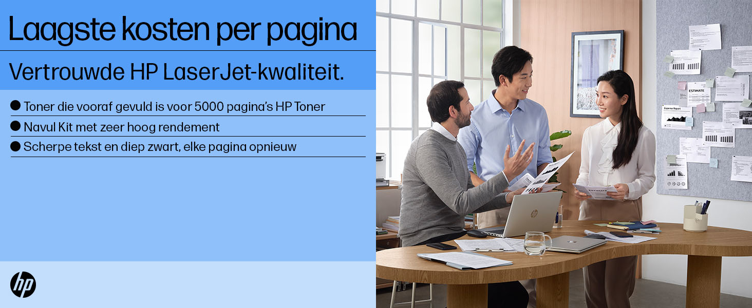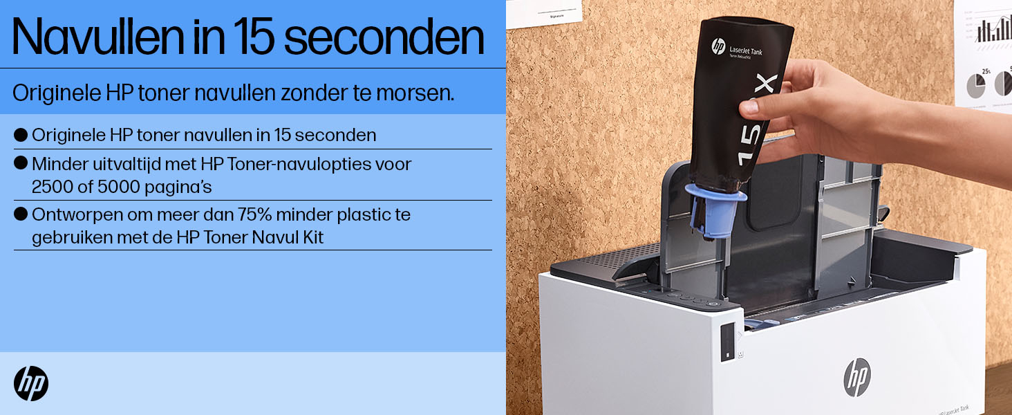 Optimale productiviteit. Supervoordelig navullen. Ontdek zakelijke mogelijkheden en besparingen met de HP LaserJet Tank 2504dw printer die vooraf gevuld is met originele HP toner voor tot 5000 pagina's[1]. HP LaserJet Tank-technologie