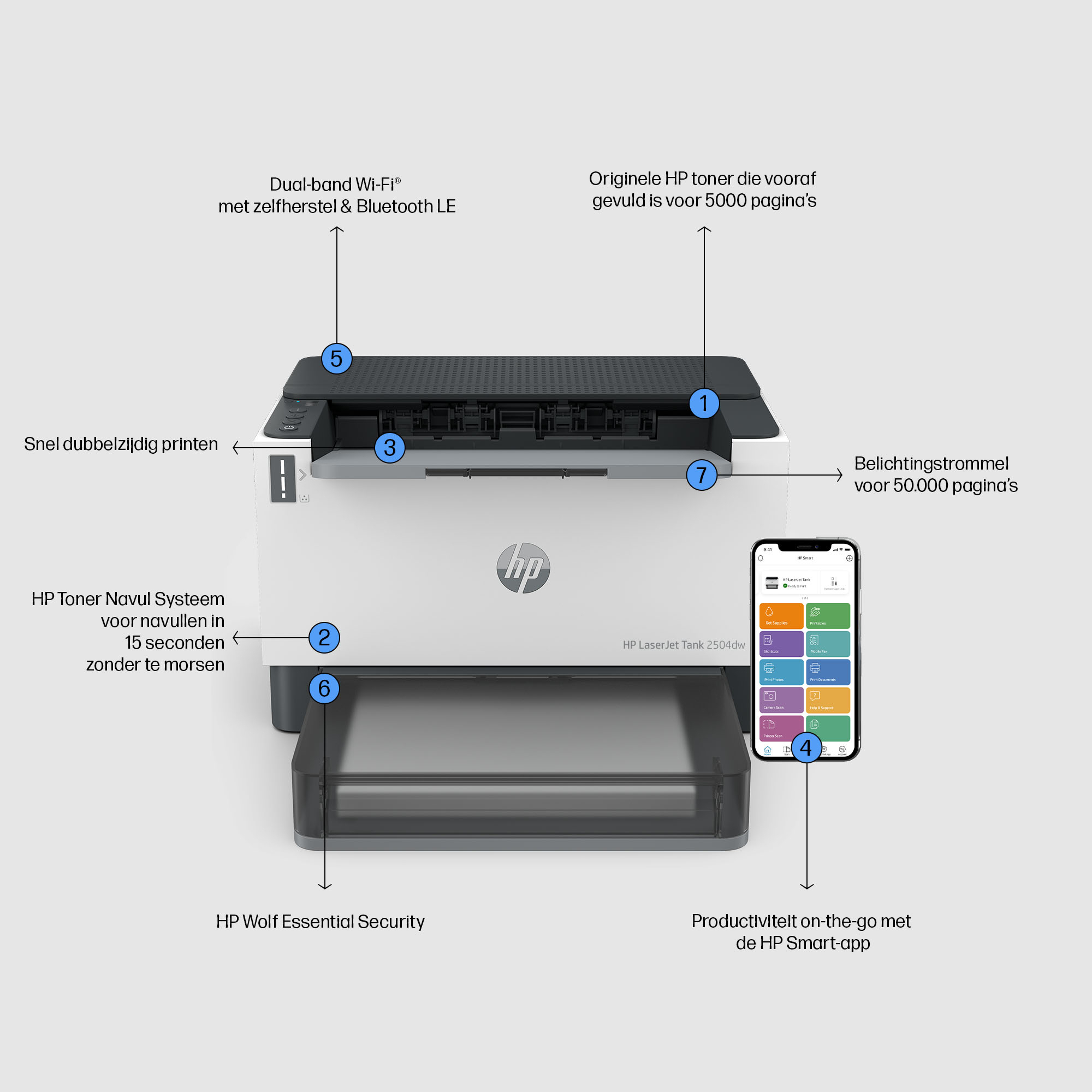 HP LaserJet Tank 2504dw printer, Laser, 600 x 600 DPI, A4, 22 ppm, Duplex printen, Netwerkgereed