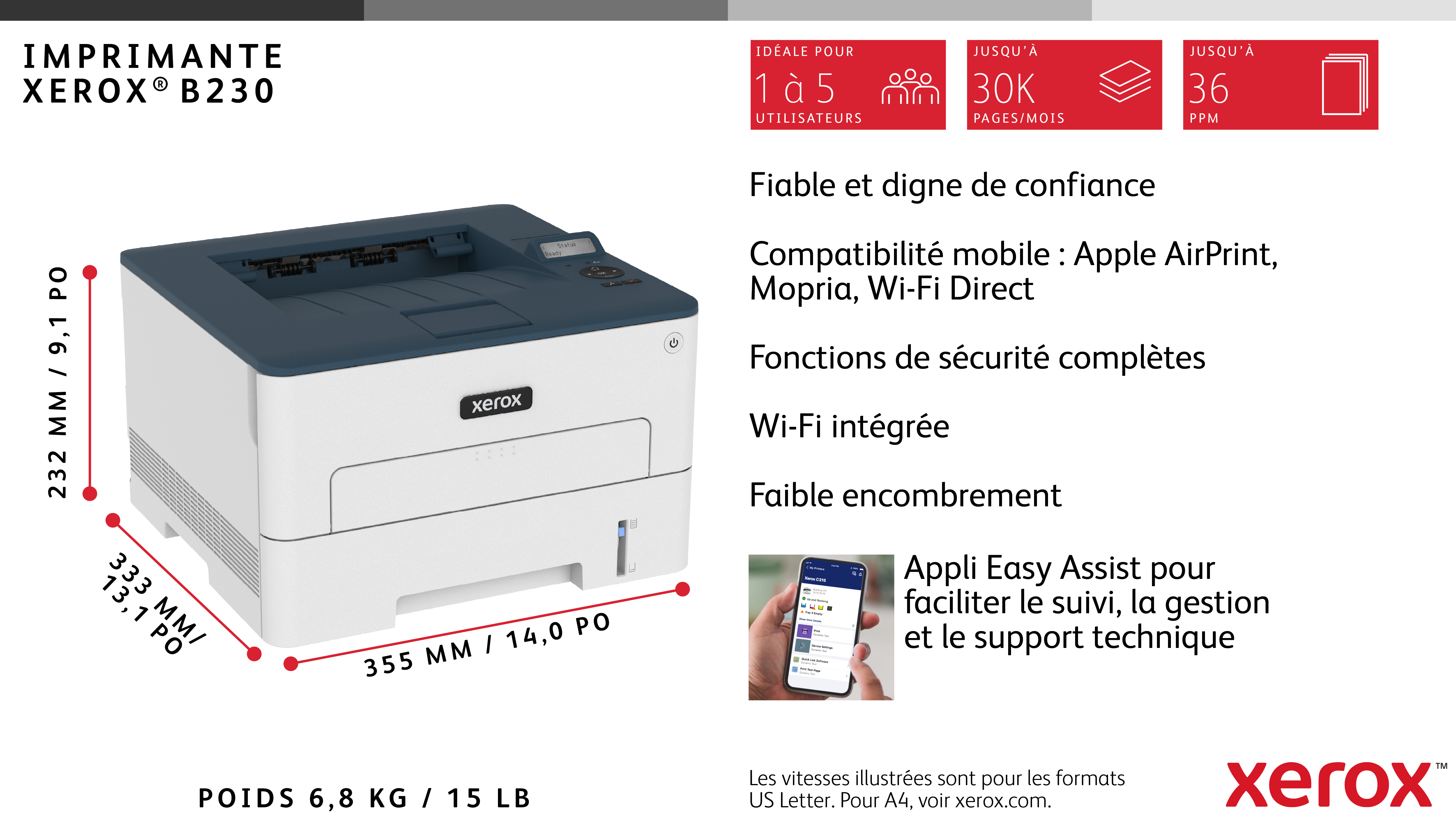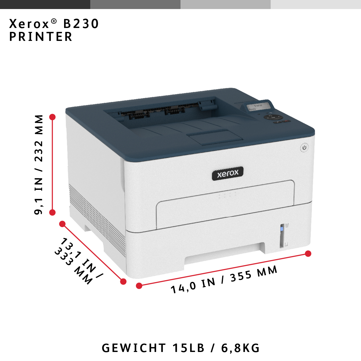 Xerox B230 A4 34 ppm draadloze dubbelzijdige printer PS3 PCL5e/6 2 laden totaal 251 vel