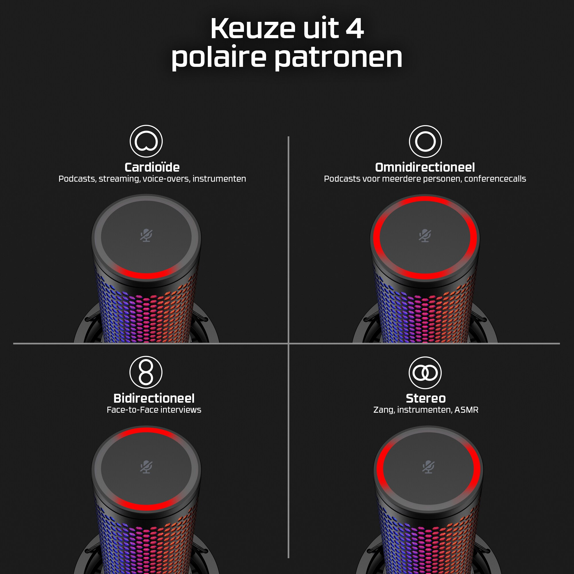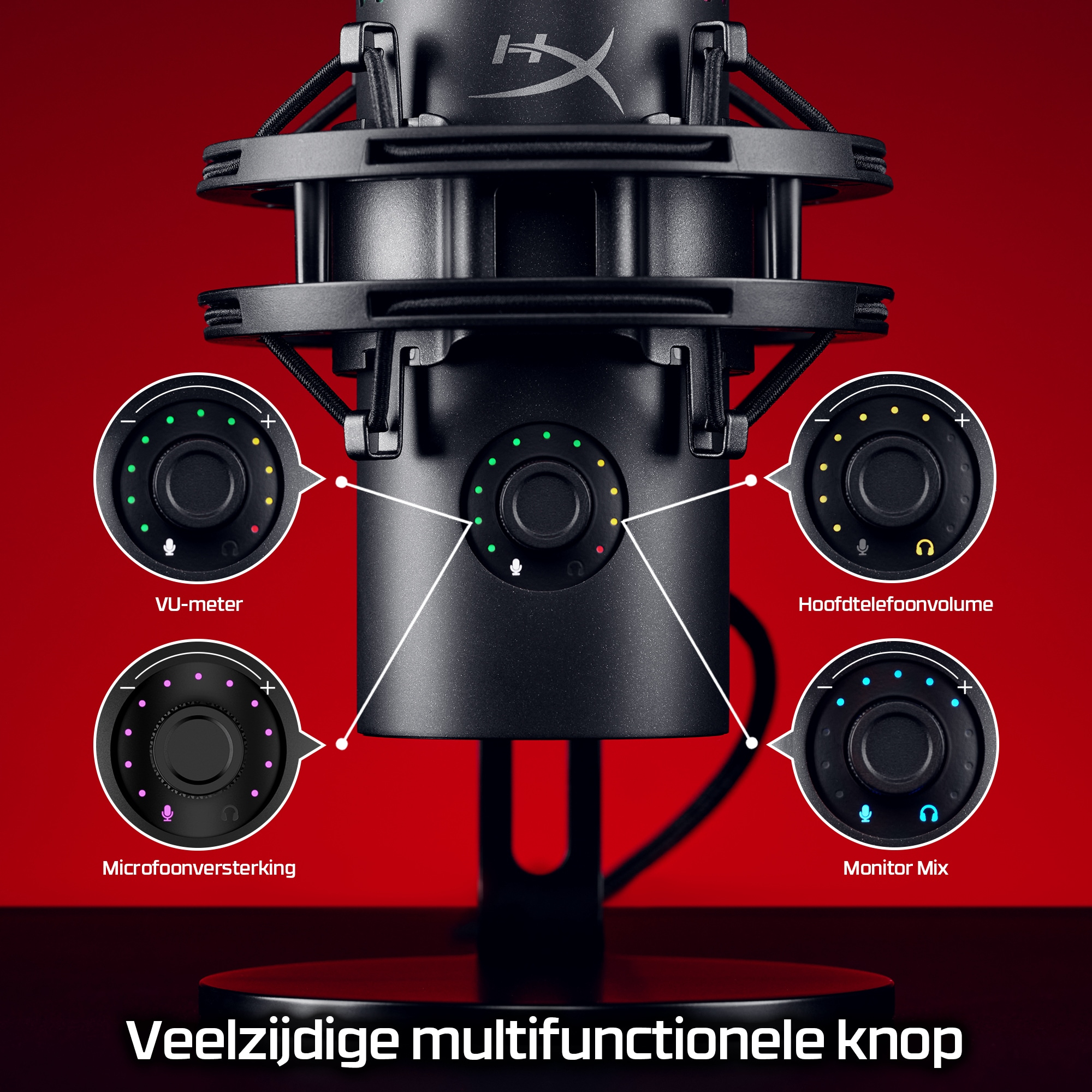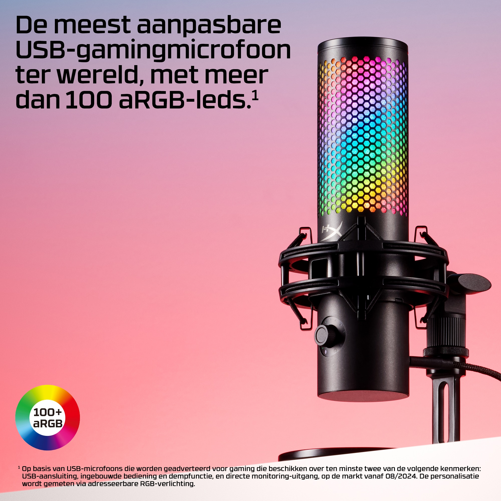 HyperX QuadCast 2 S - USB-microfoon (zwart), Tafelmicrofoon, -8 dB, 20 - 20000 Hz, 1 Ohm, Bedraad, USB