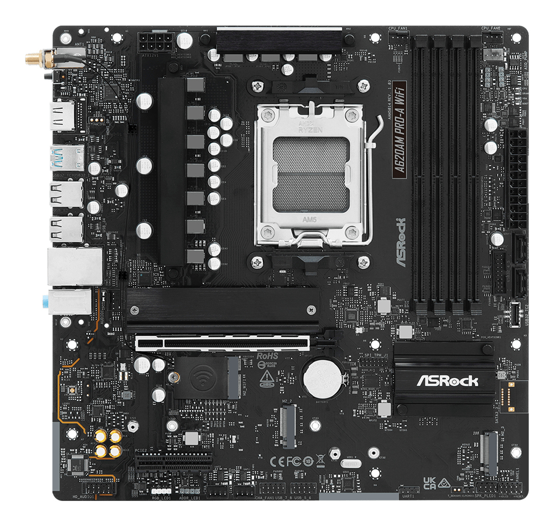 Asrock A620AM PRO-A WIFI, AMD, Socket AM5, AMD Ryzen 7000 Series, AMD Ryzen 8000 Series, AMD Ryzen 9000 Series, DDR5-SDRAM, 256 GB, DIMM