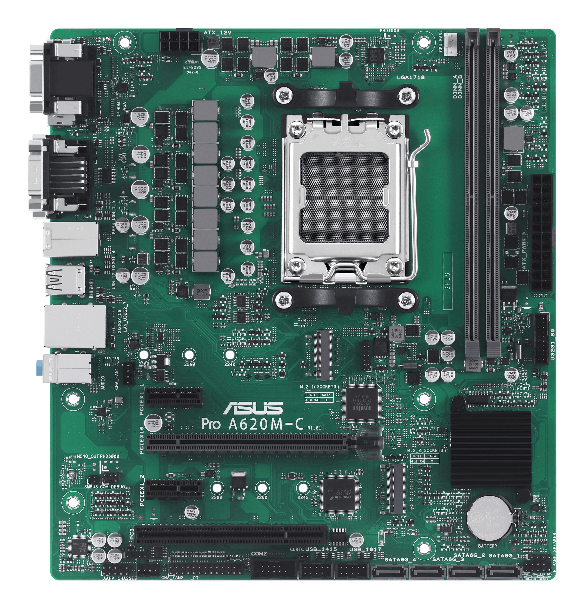 ASUS PRO A620M-C-CSM, AMD, Socket AM5, AMD Ryzen 7000 Series, Socket AM5, DDR5-SDRAM, 96 GB