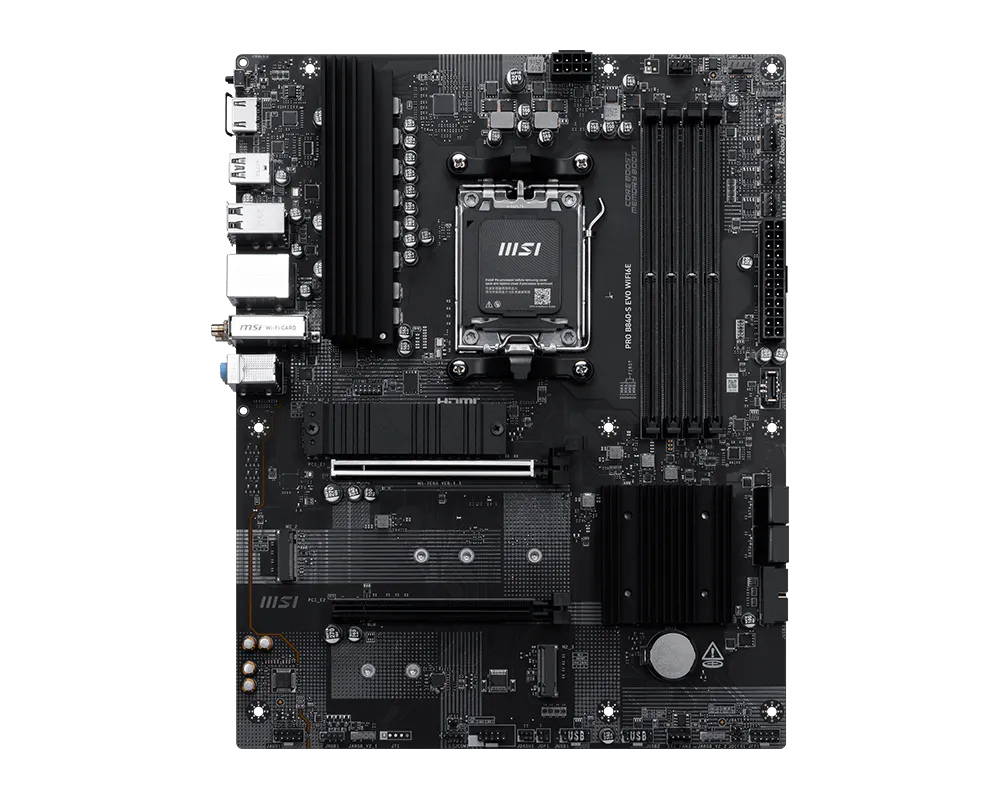 MSI Pro B840-S EVO WIFI6E, AMD, Socket AM5, AMD Ryzen 7000 Series, AMD Ryzen 8000 Series, AMD Ryzen 9000 Series, Socket AM5, DDR5-SDRAM, 256 GB