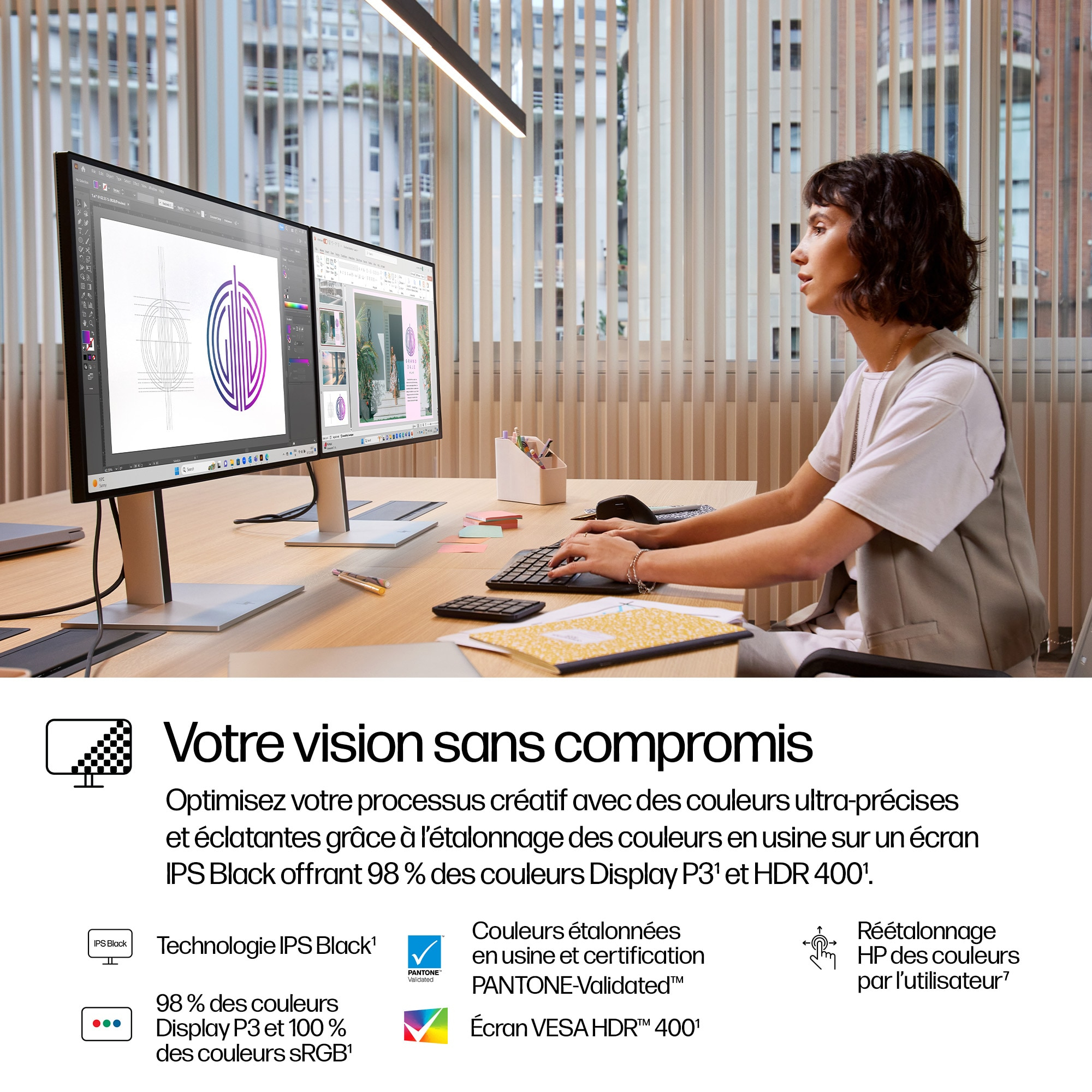 Zie al je ideeën helder op het scherm. De HP 27 inch QHD Thunderbolt 4-monitor combineert heldere kleuren met perfecte connectiviteit. De ideale combinatie voor jouw creatieve proces. Houd je visie scherp met een helder beeldscherm en krachtige functies voor multitasking.