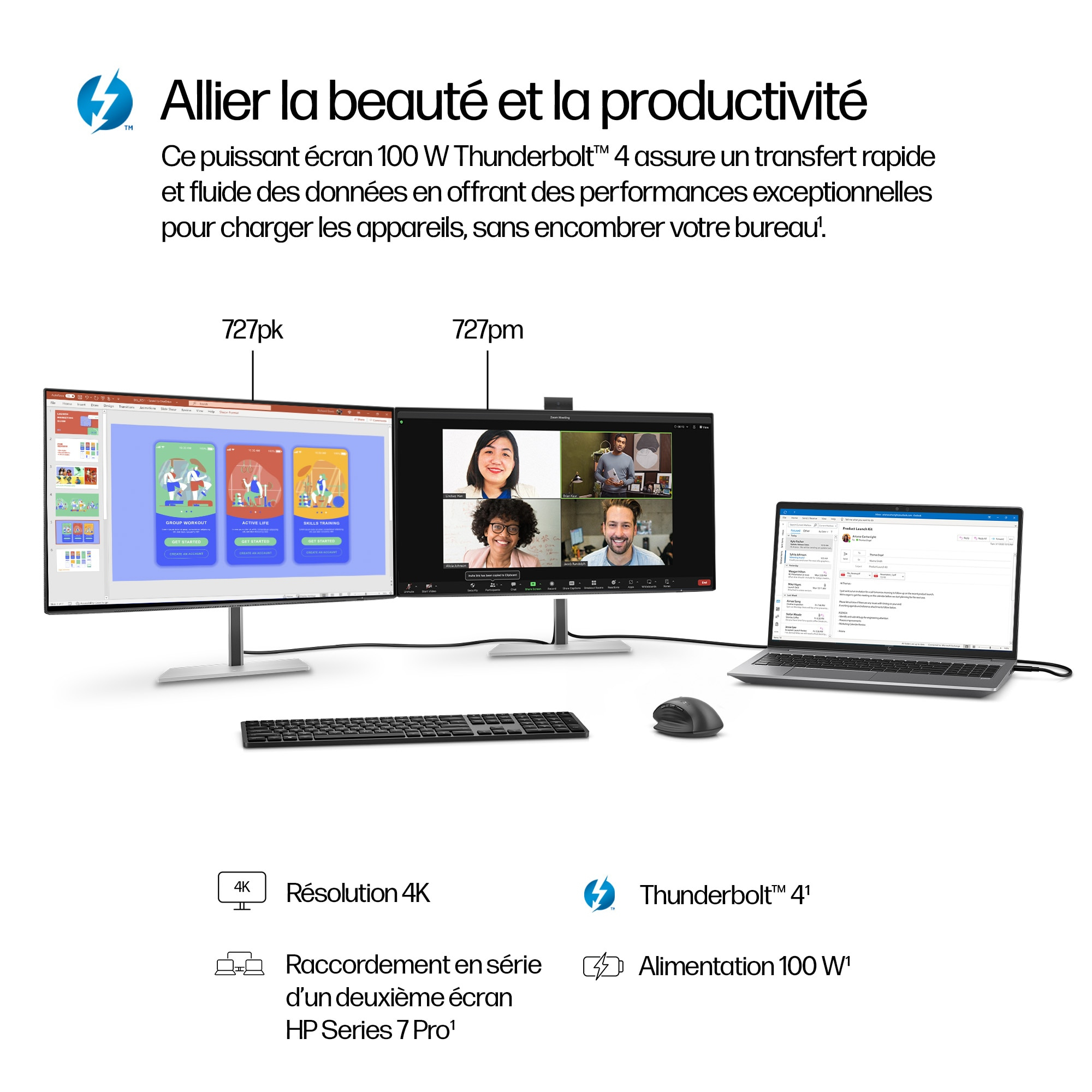 Maak moeiteloos een geweldige indruk dankzij buitengewone samenwerkingsopties met ingebouwde AI-conferencing op een oogverblindend 4K-beeldscherm met Thunderbolt 4.