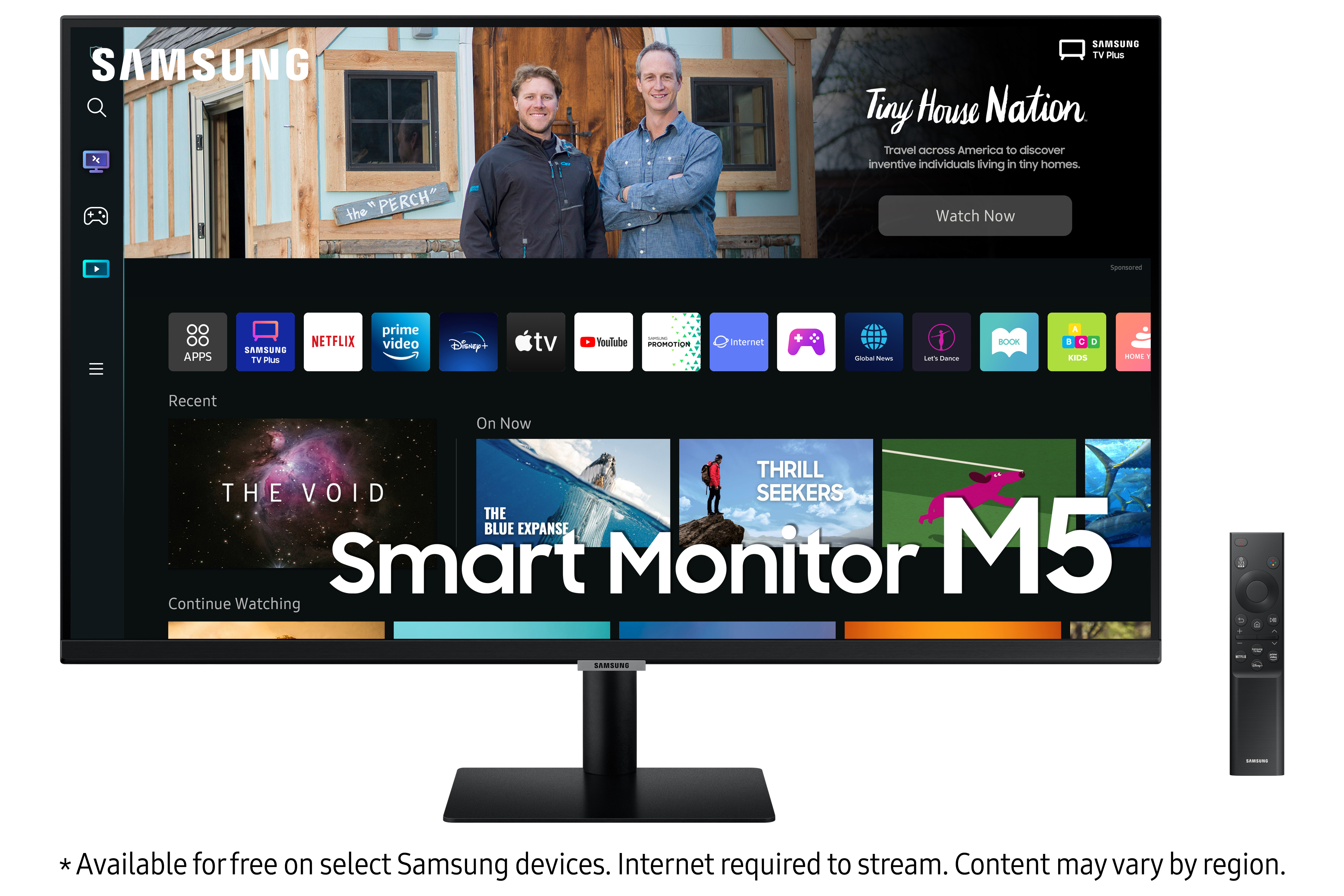 De M5 is uitgerust met geïntegreerde speakers en biedt een rijk en levensecht geluid voor een meeslepende ervaring. Bovendien past de Adaptive Sound-functie geluid aan op basis van het type content: van spraak en muziek tot omgevingsgeluid. Hierdoor geniet de luisteraar van een verfijnder en aangenamer geluid.