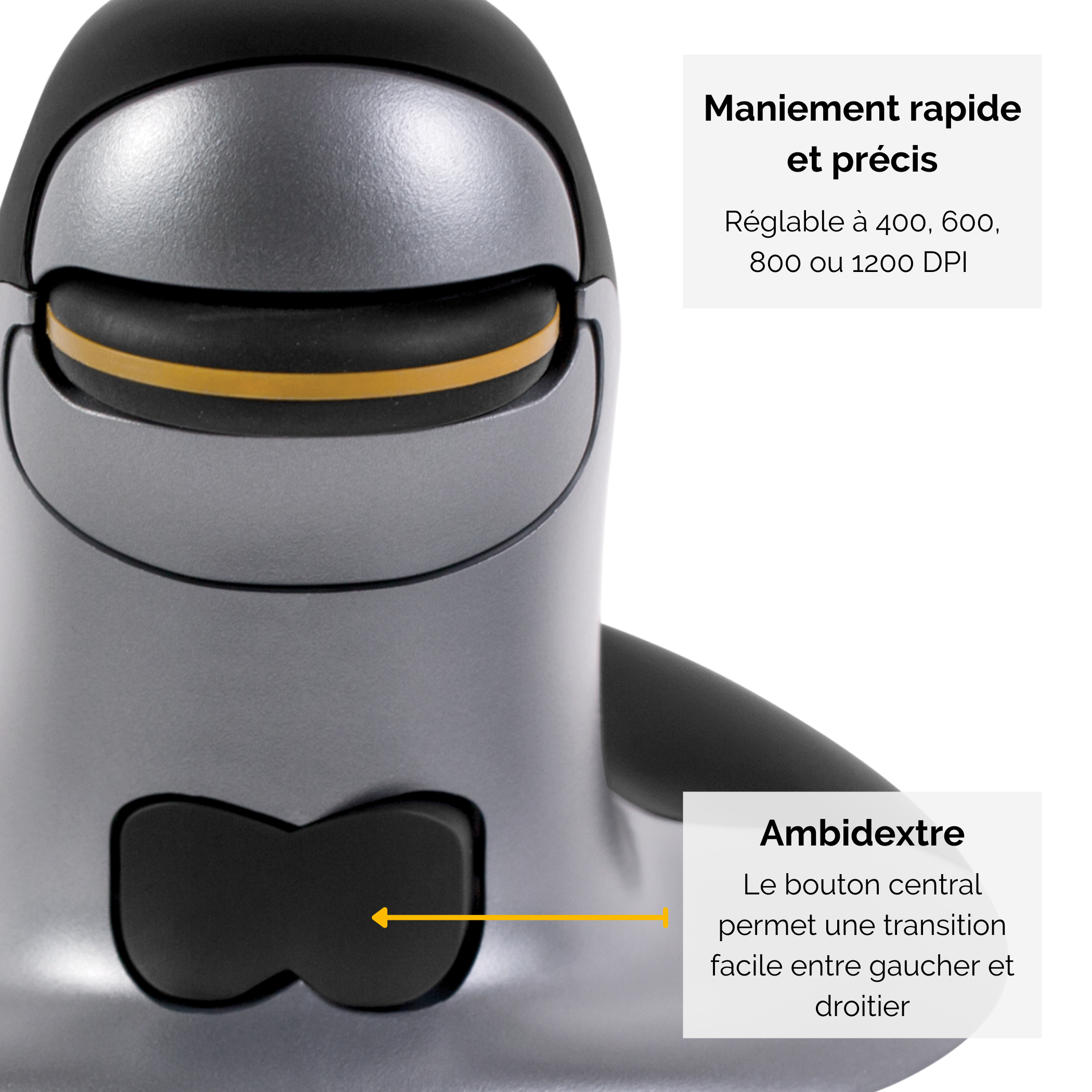 Fellowes Penguin draadloze ergonomische muis (links- & rechtshandig) – medium, Ambidextrous, Verticaal ontwerp, Laser, RF Draadloos, 1200 DPI, Zwart, Zilver