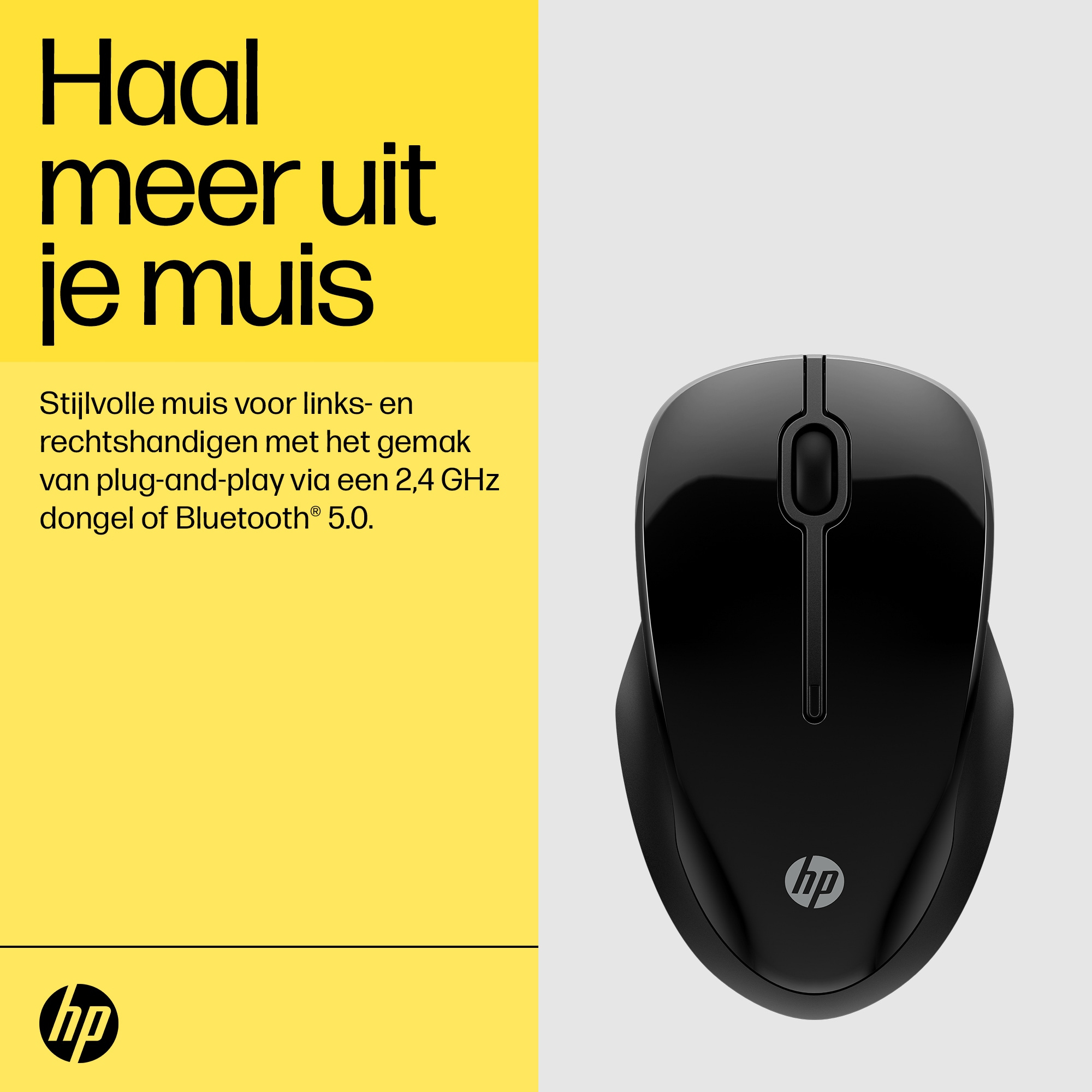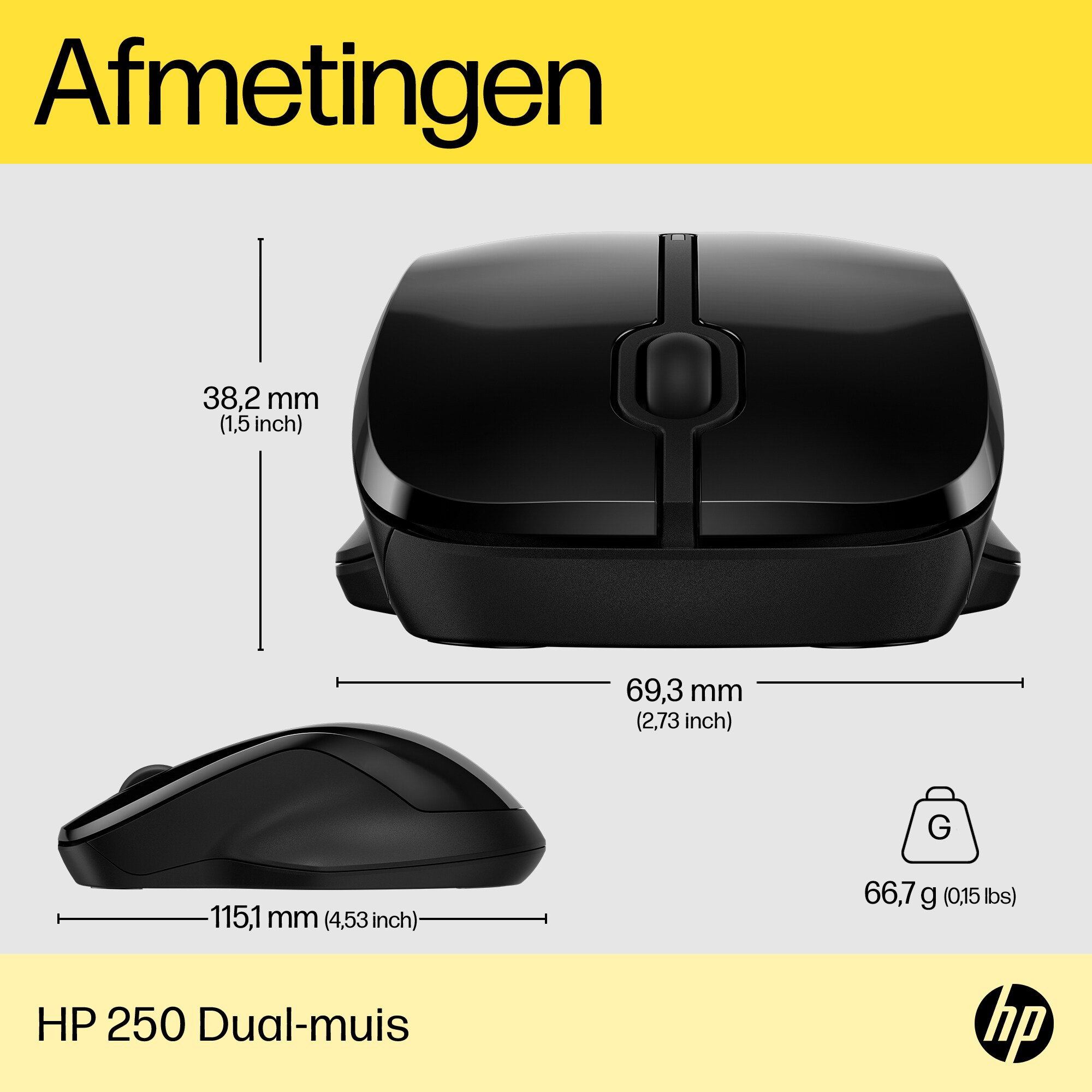 HP 250 Dual-muis, Ambidextrous, Bluetooth + USB Type-A, 1600 DPI, Zwart