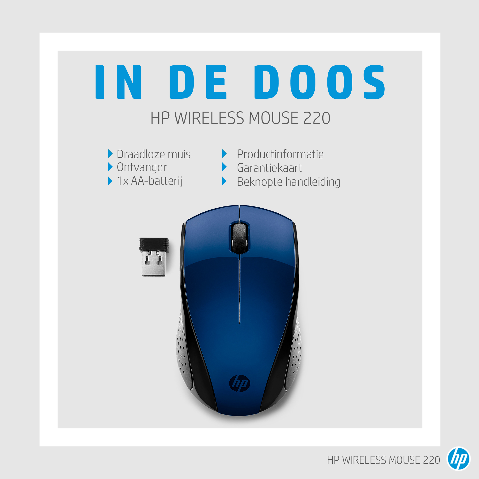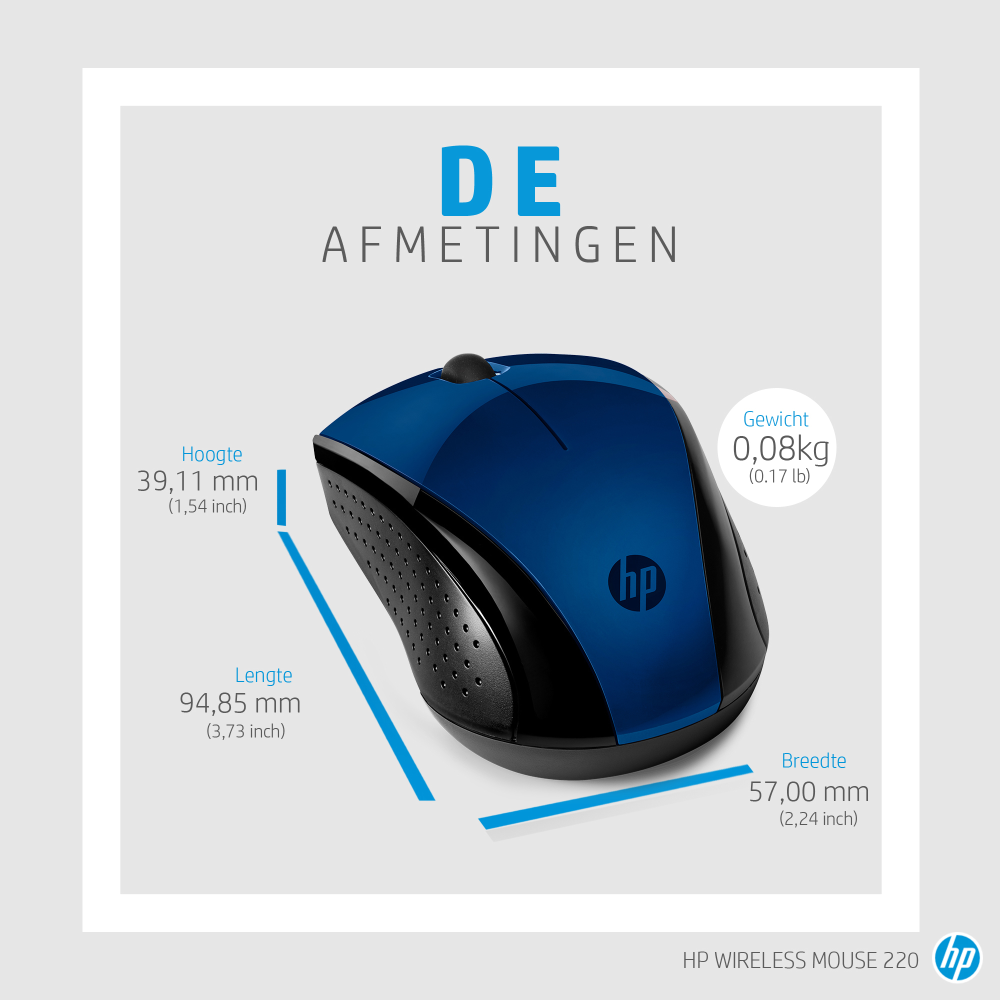 HP draadloze muis 220 (lumiereblauw), Ambidextrous, RF Draadloos, Blauw