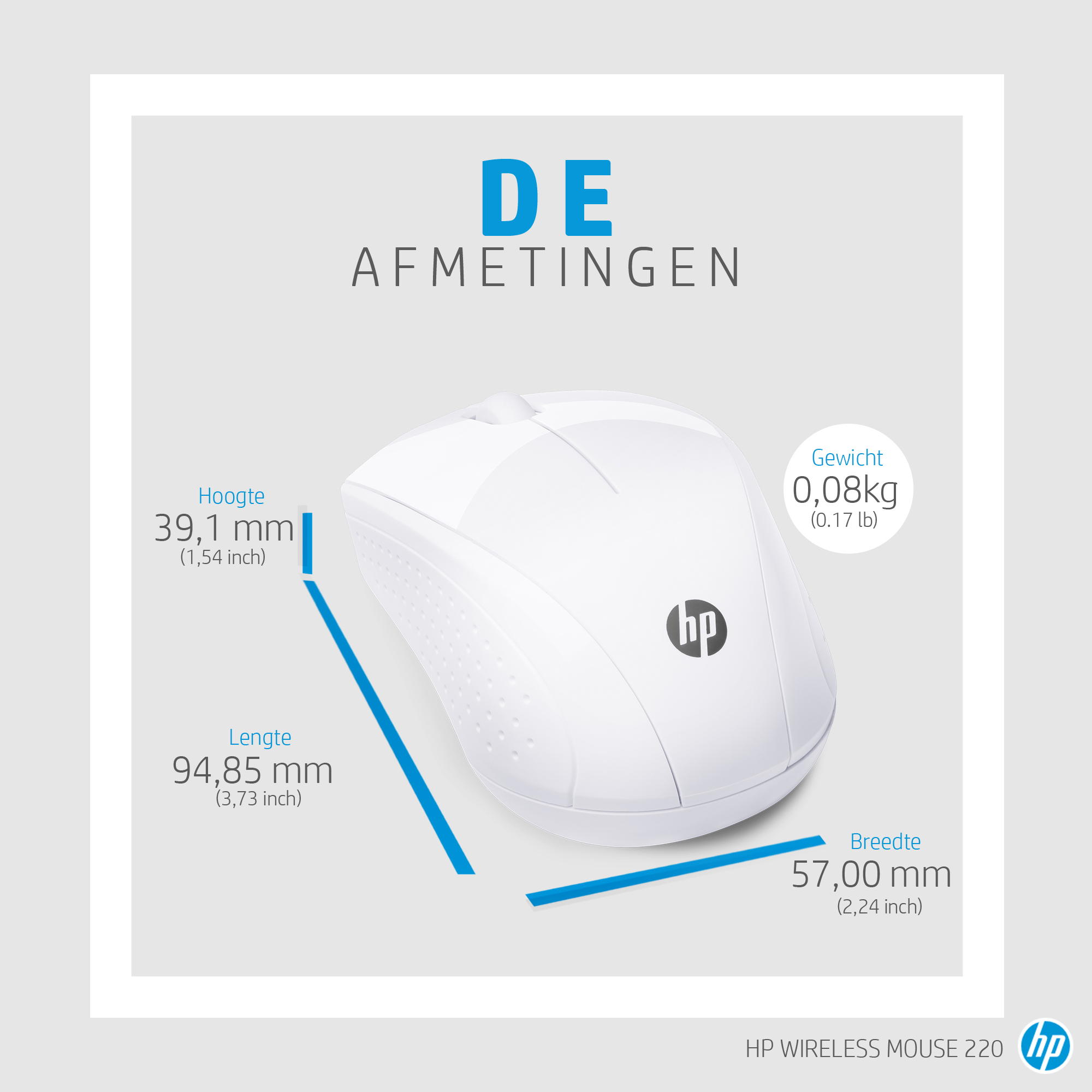 HP draadloze muis 220 (sneeuwwit), Optisch, RF Draadloos, Wit