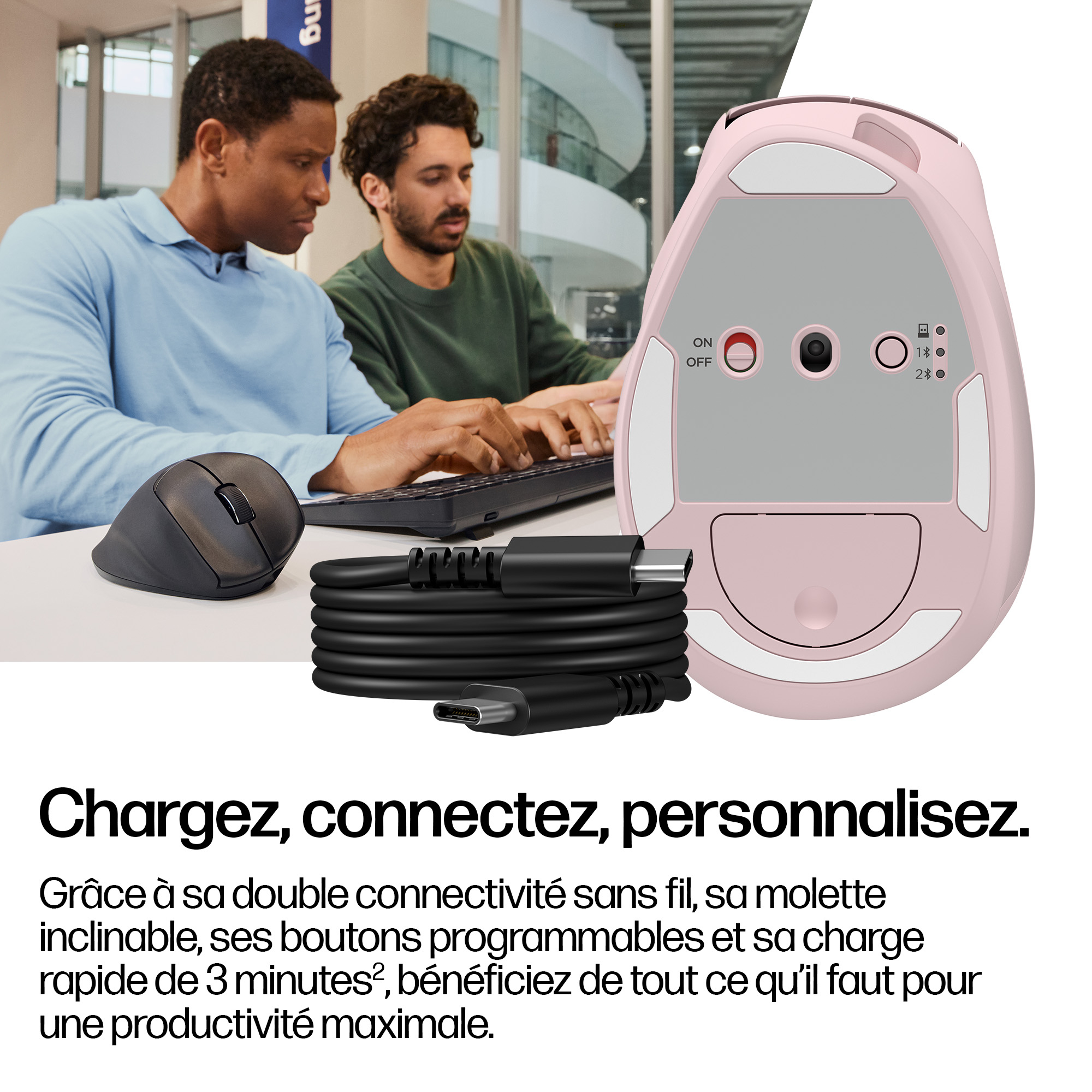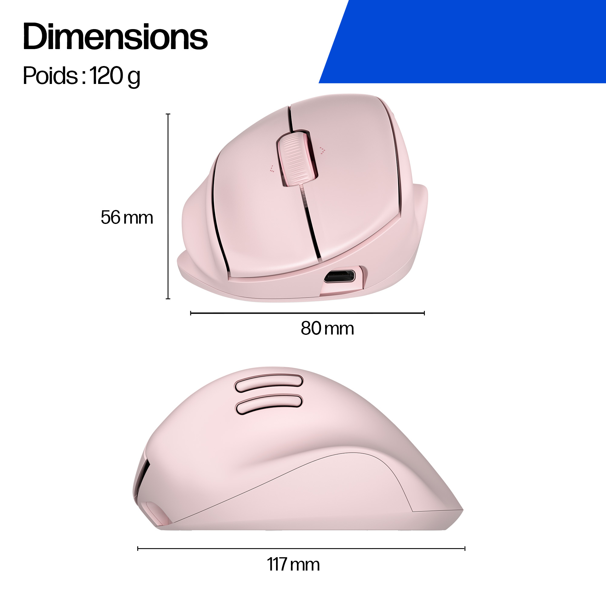 Maak lange dagen licht met een muis die meteen comfort biedt. De semi-verticale kanteling biedt volledige handsteun, terwijl twee draadloze opties, snel verticaal en horizontaal scrollen en snelladen je de hele dag productief houden.