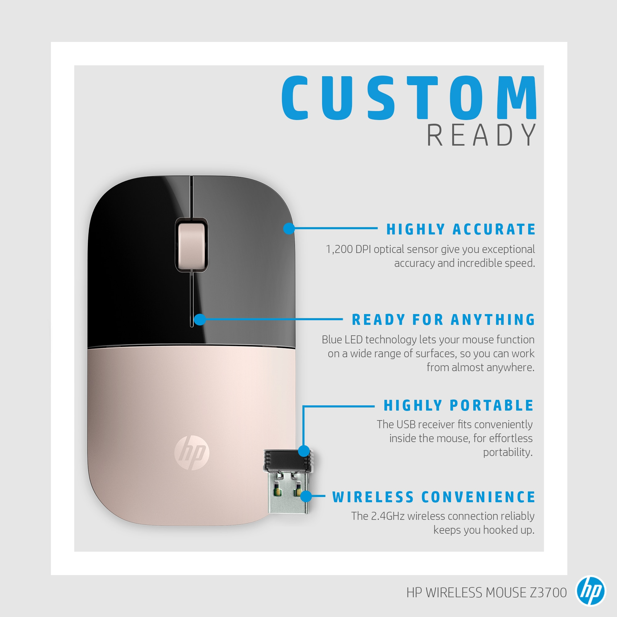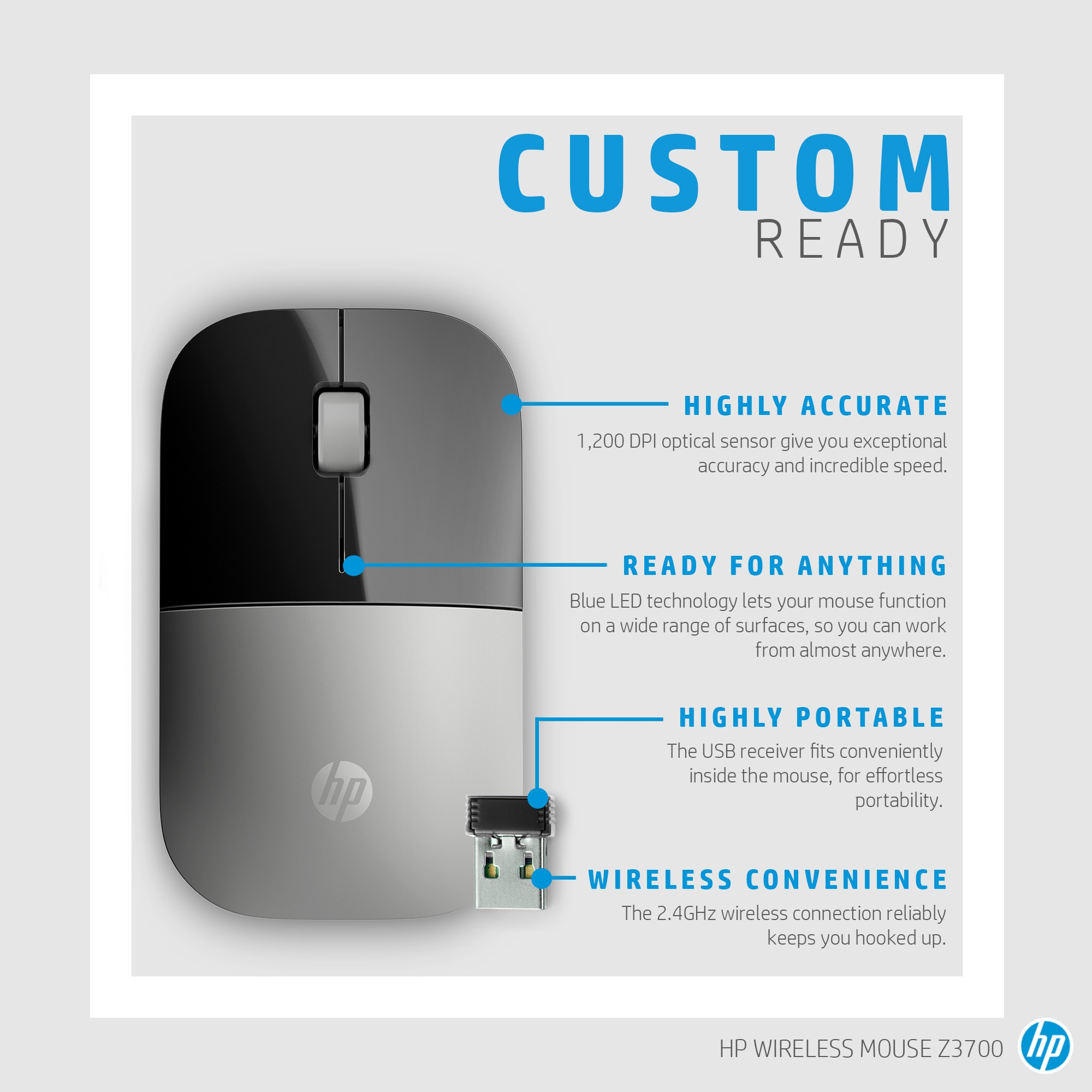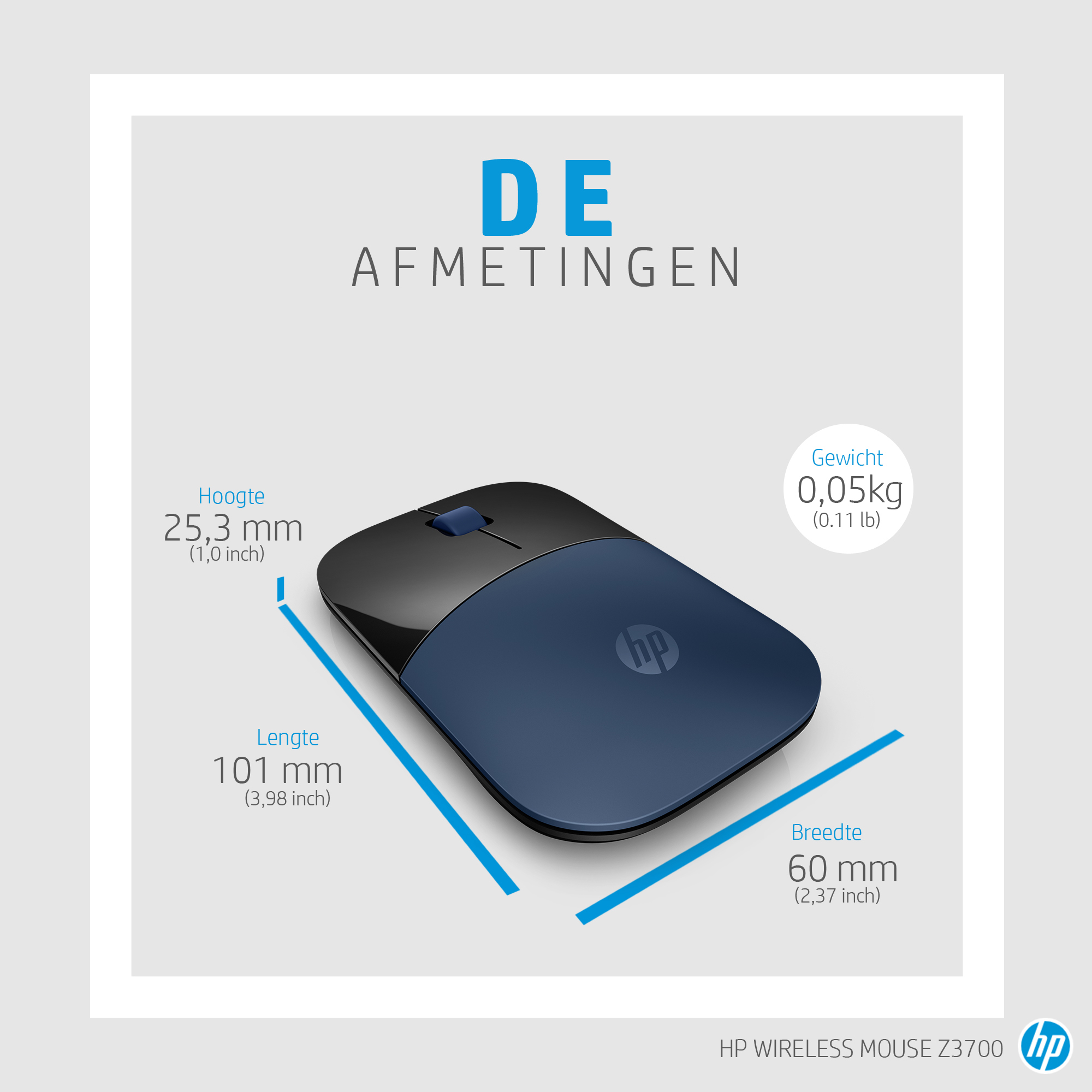 HP Z3700 blauwe draadloze muis, Ambidextrous, Optisch, RF Draadloos, 1200 DPI, Blauw
