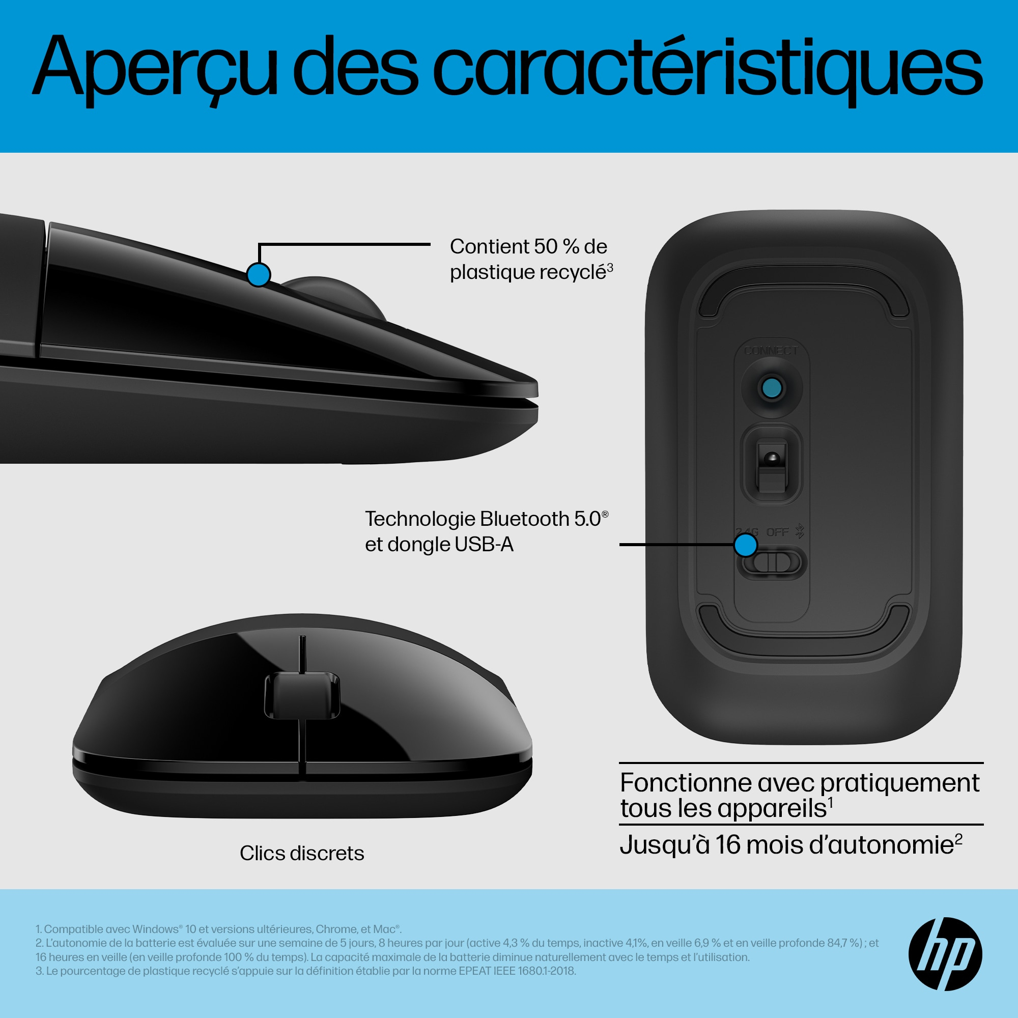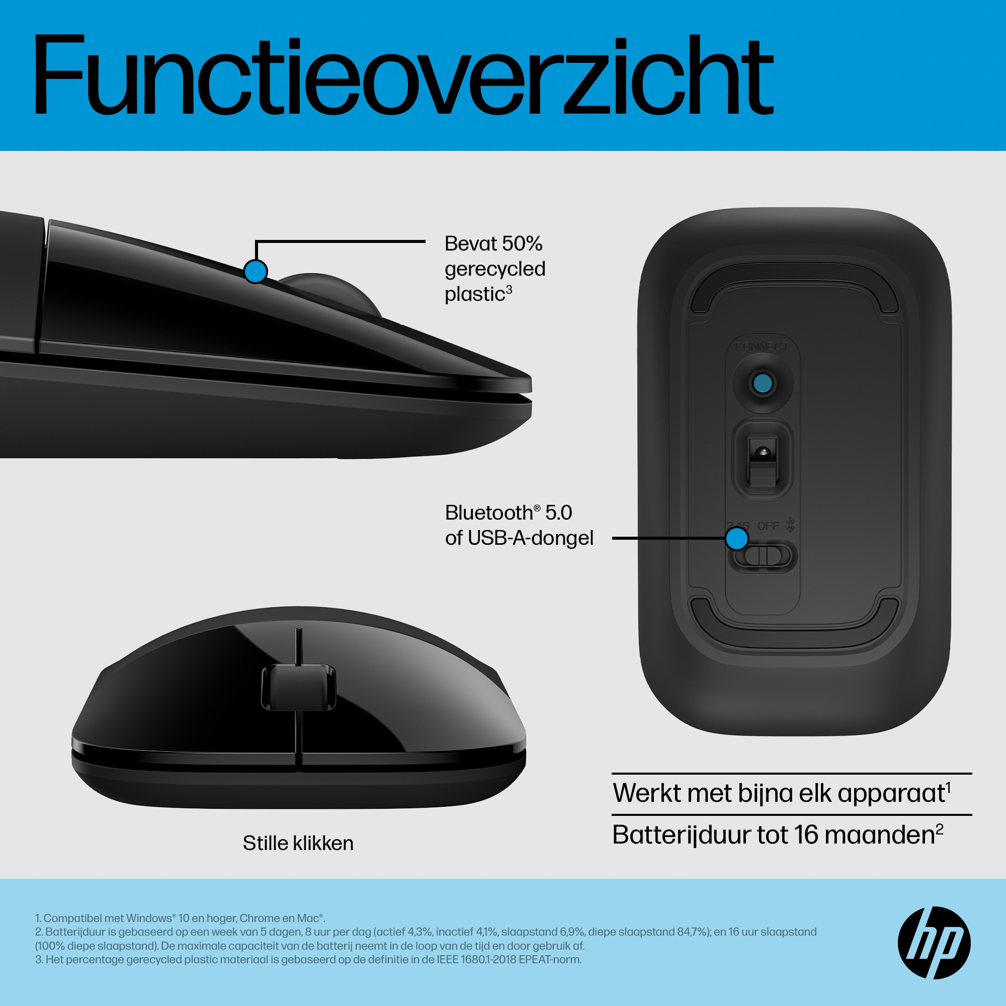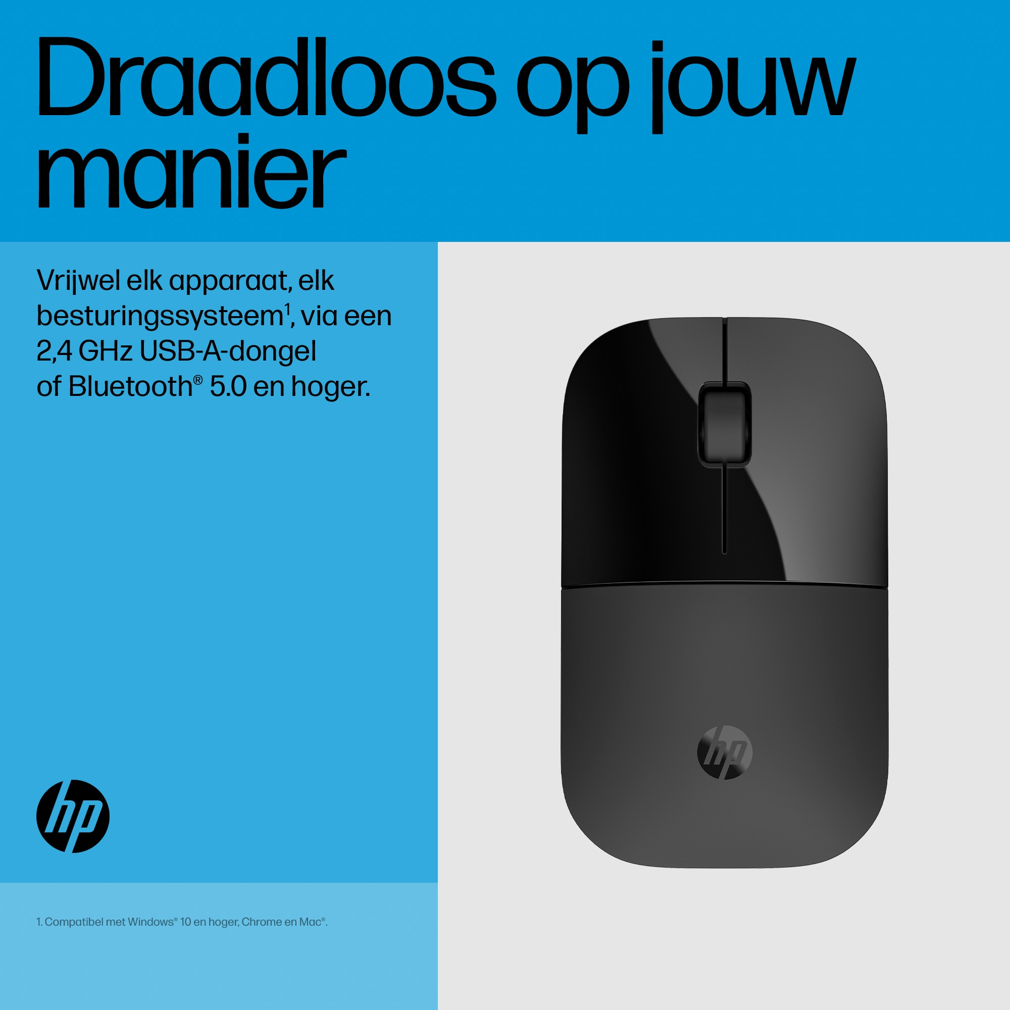 HP Z3700 Dual Black-muis, Ambidextrous, RF Draadloos, 1600 DPI, Zwart