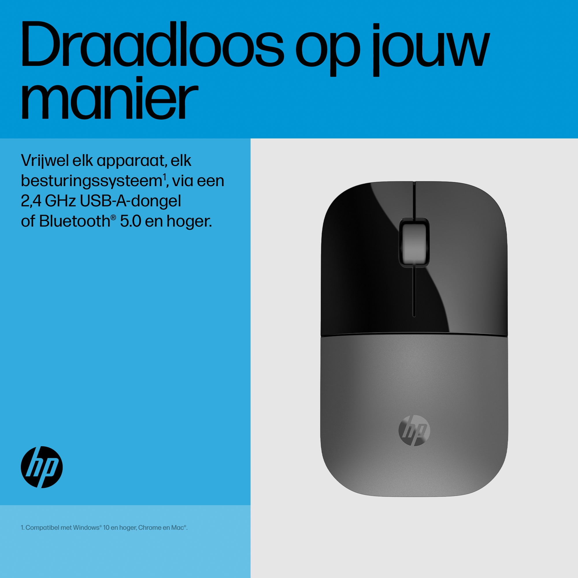 HP Z3700 Dual Silver-muis, Ambidextrous, RF-draadloos + Bluetooth, Zilver