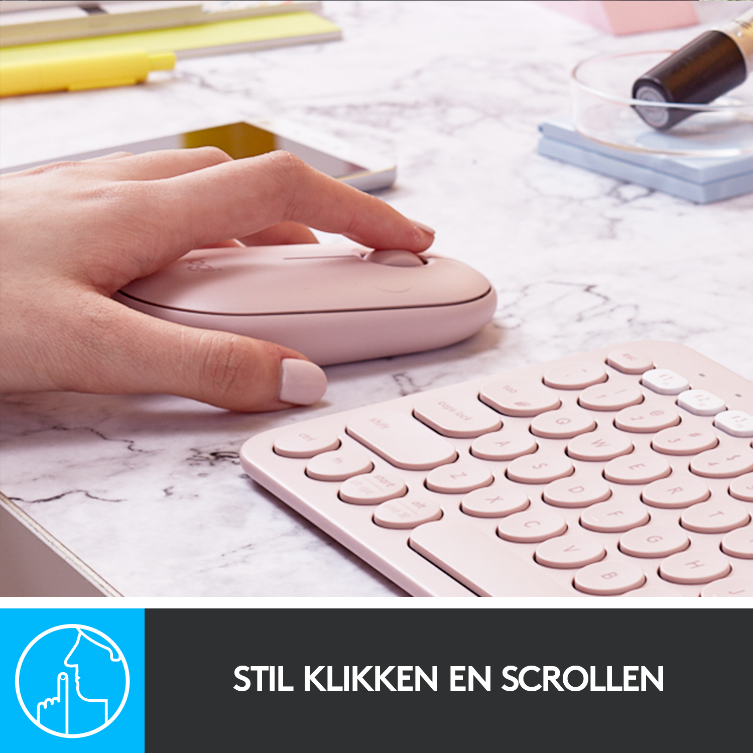 Logitech Pebble M350, Ambidextrous, Optisch, RF-draadloos + Bluetooth, 1000 DPI, Roze