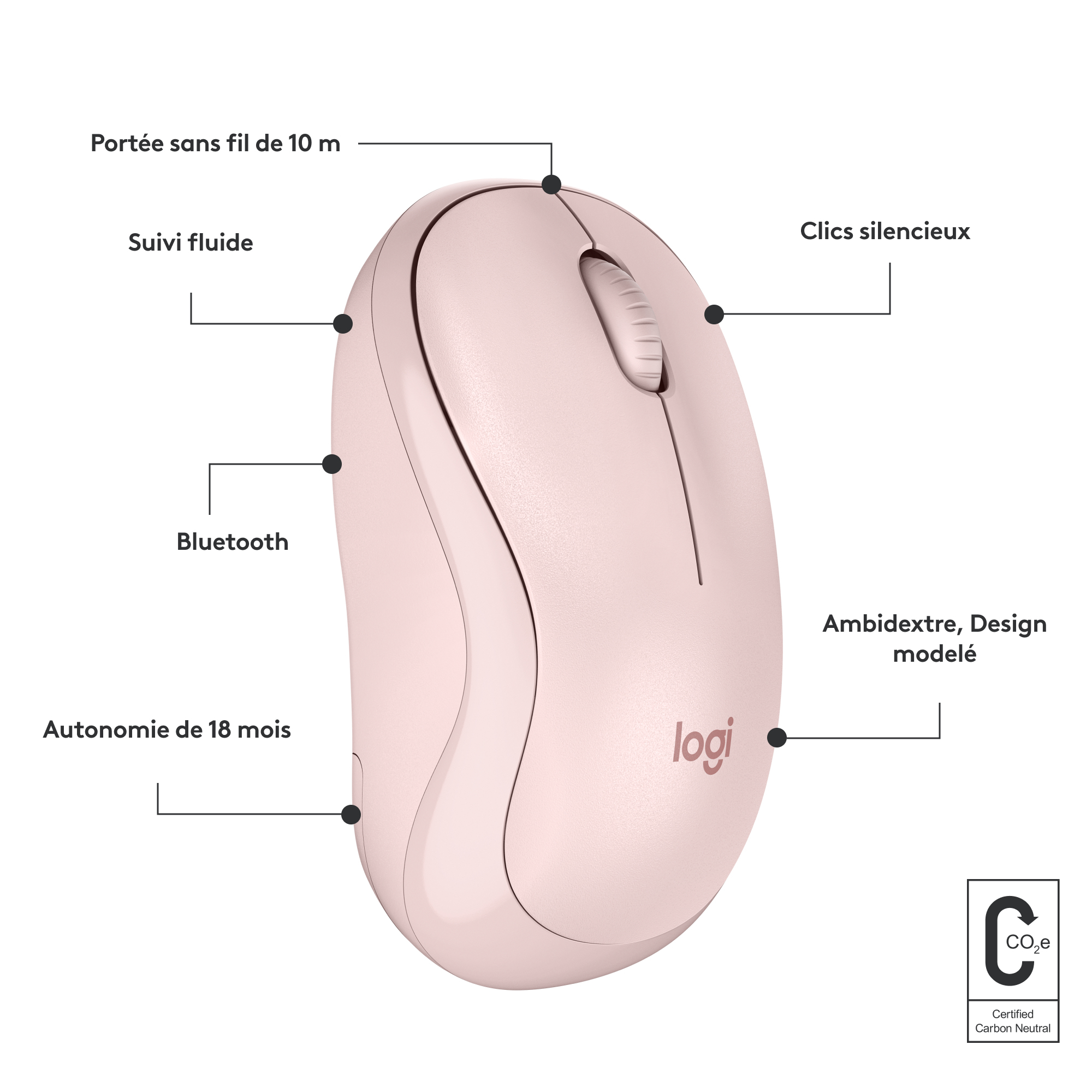 Logitech M240 Silent, Ambidextrous, RF-draadloos + Bluetooth, Roze