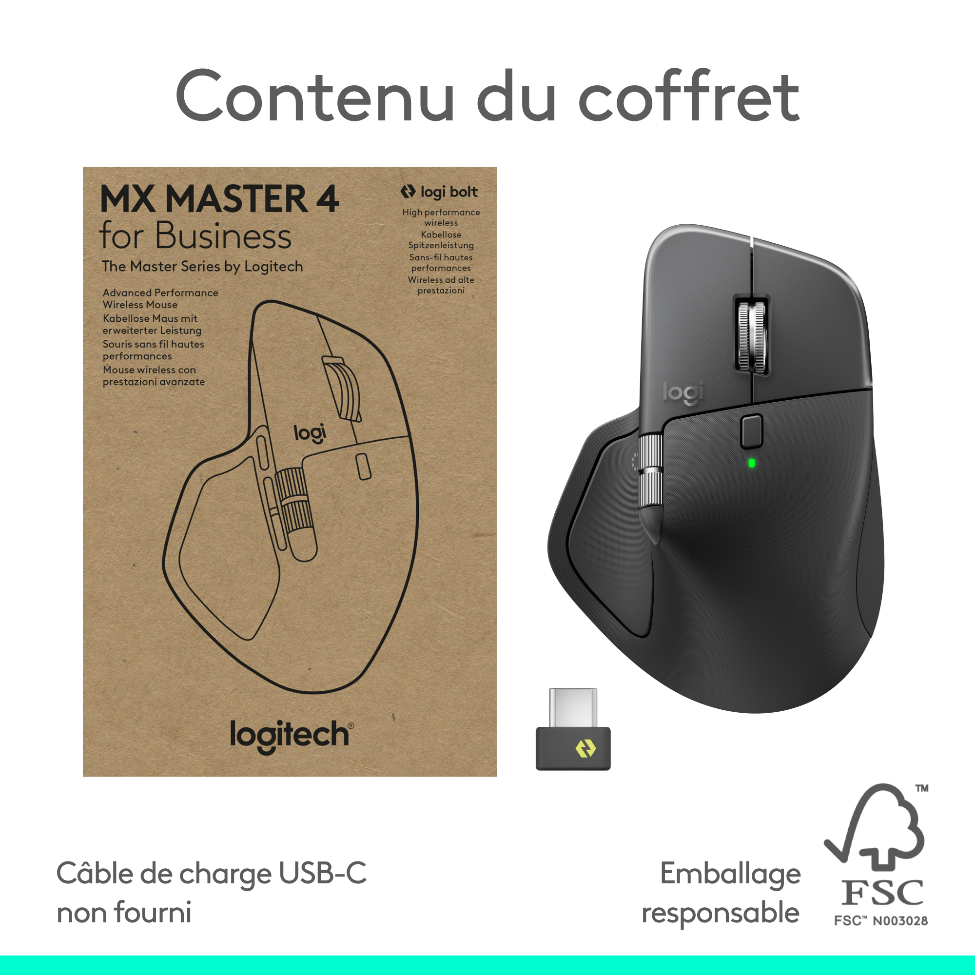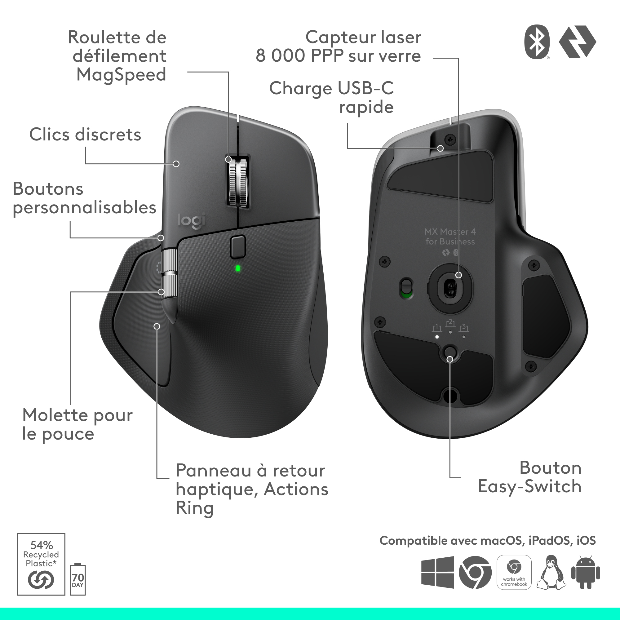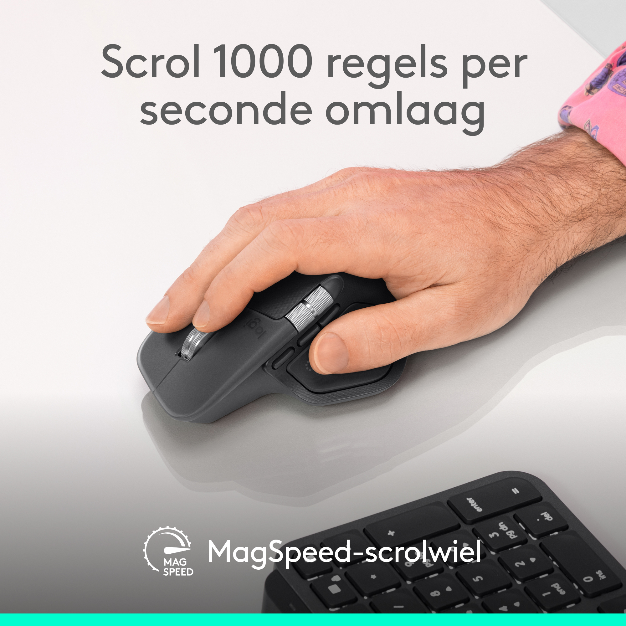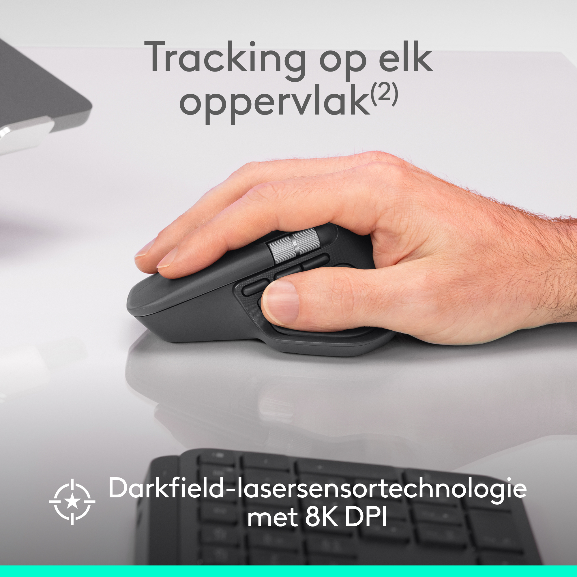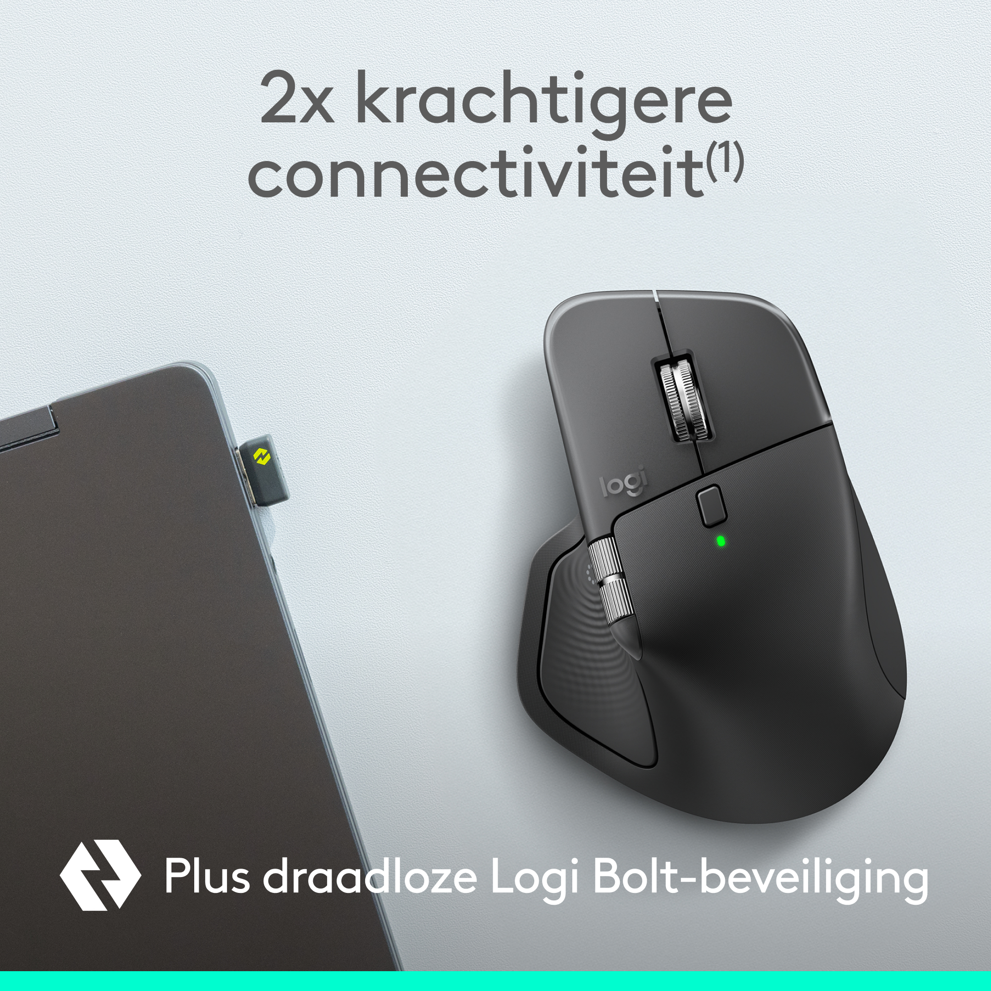 De MX Master 4 for Business, onze ultieme muis voor zakelijke professionals, combineert een eersteklas ontwerp met geavanceerde functies en verbeterde connectiviteit. Hij heeft onder andere een Darkfield-lasersensor van 8K DPI, Quiet Click-technologie, een MagSpeed-scrolfunctie, een nieuwe Actions Ring(4) en haptische feedback om de productiviteit te verhogen. De geavanceerde radiochip, de geoptimaliseerde antenneplaatsing en de Logi Bolt USB-C-ontvanger zorgen voor een 2x krachtigere connectiviteit(1) om de prestaties in drukke, draadloze omgevingen te verbeteren. Van de ergonomische vorm voor een betere handondersteuning tot het zijscrolwiel dat natuurlijk op duimbewegingen reageert – de MX Master 4 is doordacht ontworpen om een comfortabele gebruikerservaring te bieden.