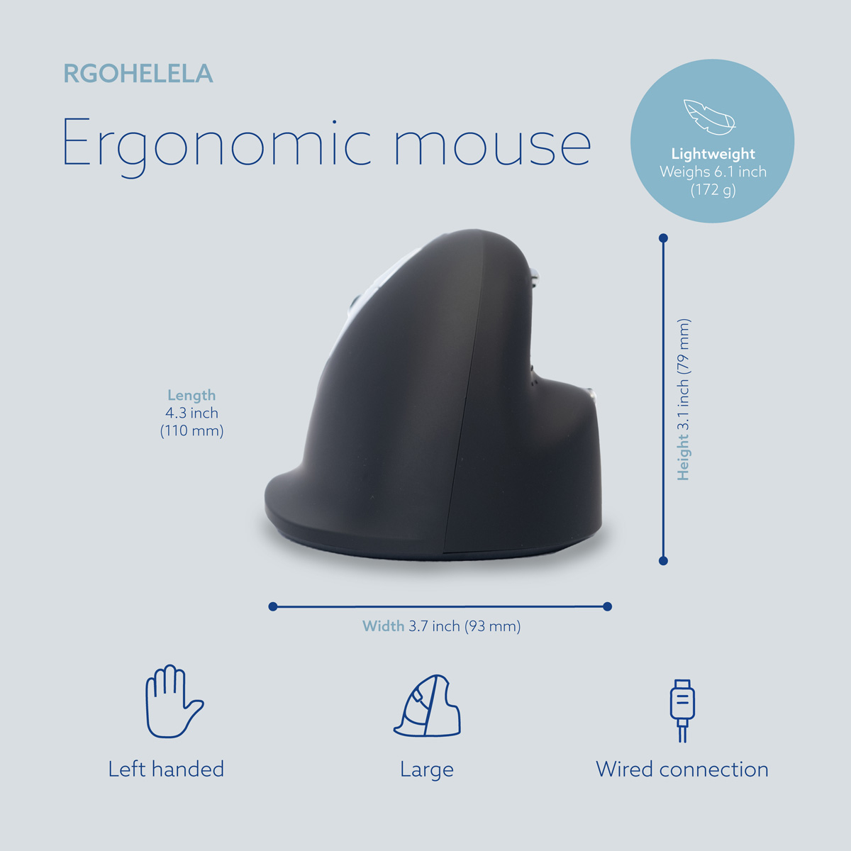 R-Go Tools Ergonomische muis R-Go HE Break met pauzesoftware, large (handlengte ≥ 185mm), linkshandig, bedraad, zwart, Linkshandig, Verticaal ontwerp, Optisch, USB Type-A, 2400 DPI, Zwart