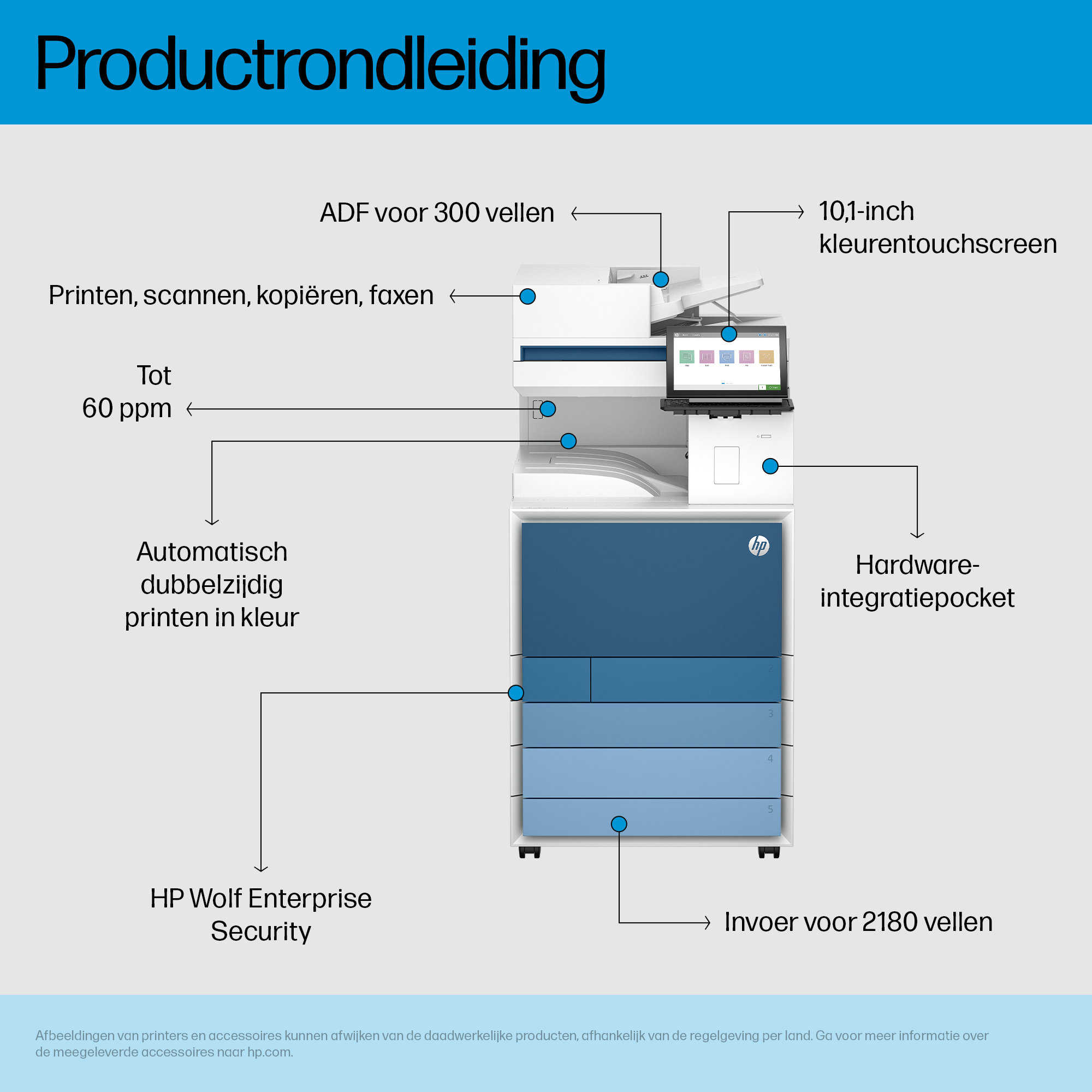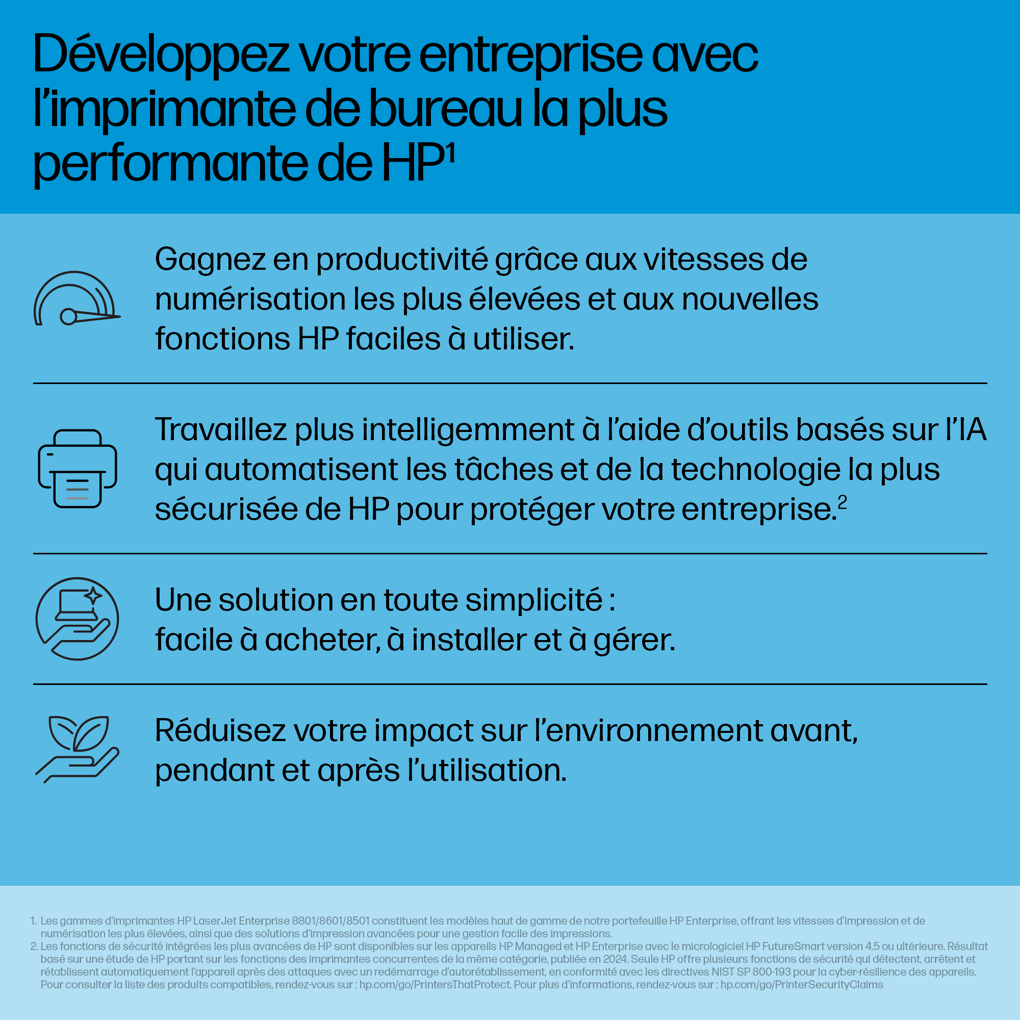 Print snel en efficiënt Verhoog de productiviteit op kantoor met razendsnelle print- en scansnelheden en eenvoudig beheer.[1].