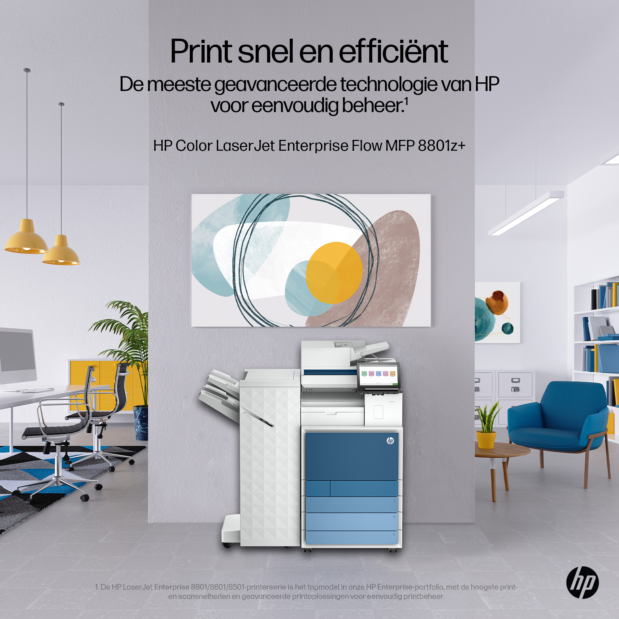 Print snel en efficiënt Verhoog de productiviteit op kantoor met razendsnelle print- en scansnelheden en eenvoudig beheer.[1].