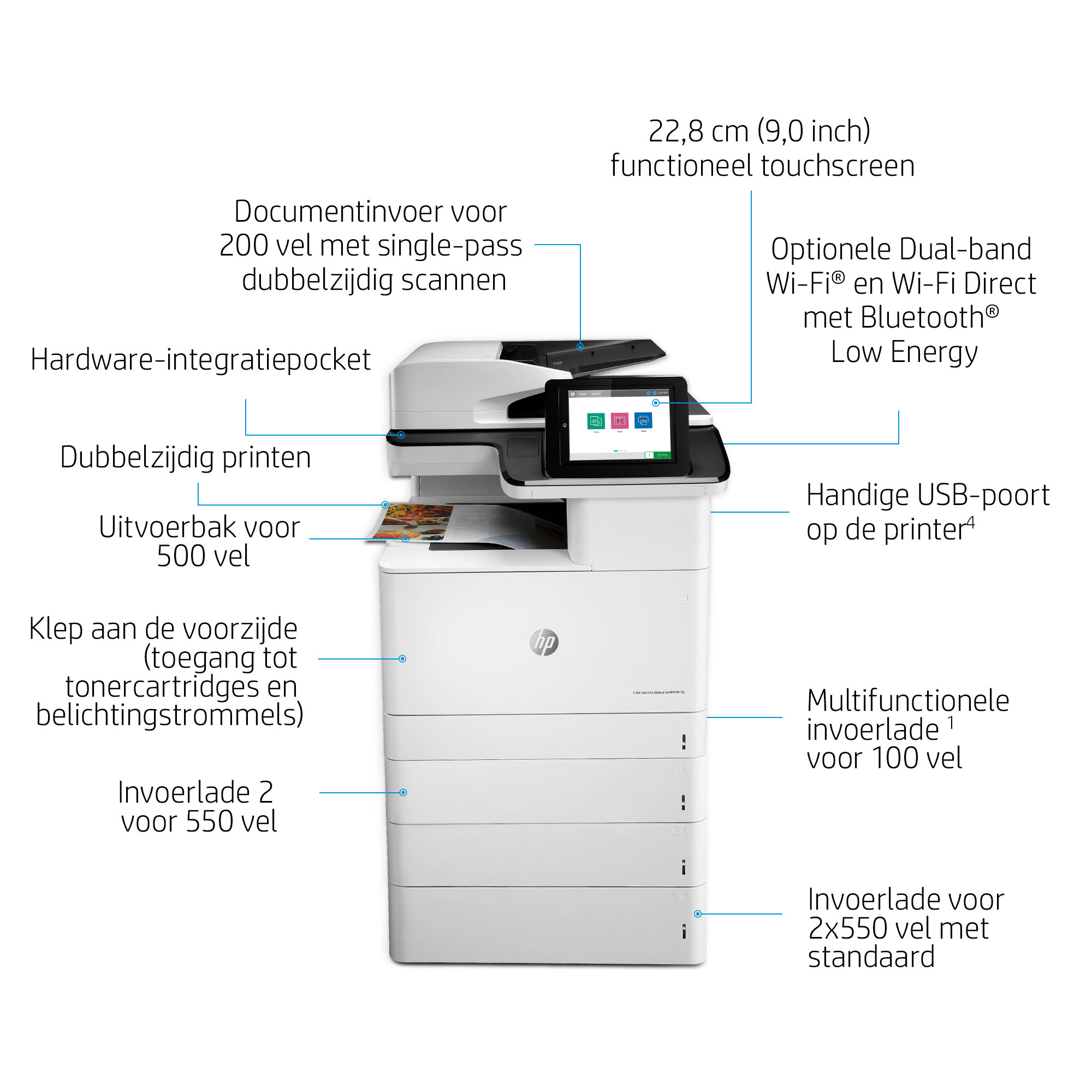 HP Color LaserJet Enterprise MFP M776dn, Laser, Afdrukken in kleur, 1200 x 1200 DPI, A3, Direct printen, Zwart, Wit