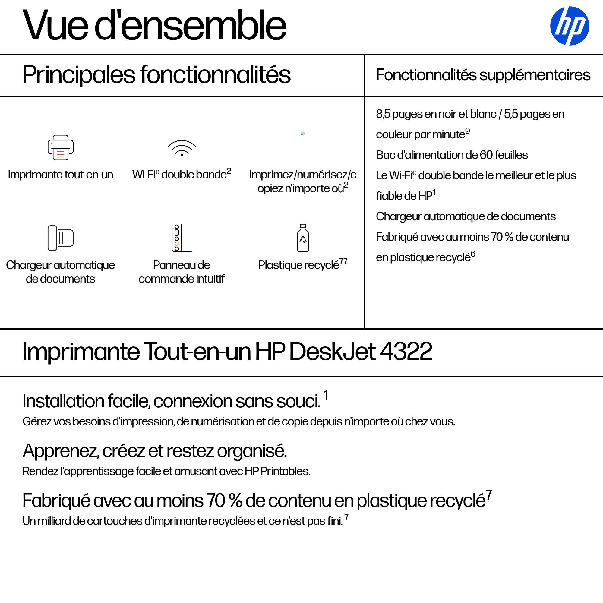 Thuis printen is supereenvoudig Print, scan en kopieer moeiteloos met deze compacte, draadloze en handige thuisprinter met automatische documentinvoer. Print alles, van retourlabels tot leerzame en kleurrijke printwerkjes.[3]. Geschikt voor HP Instant Ink