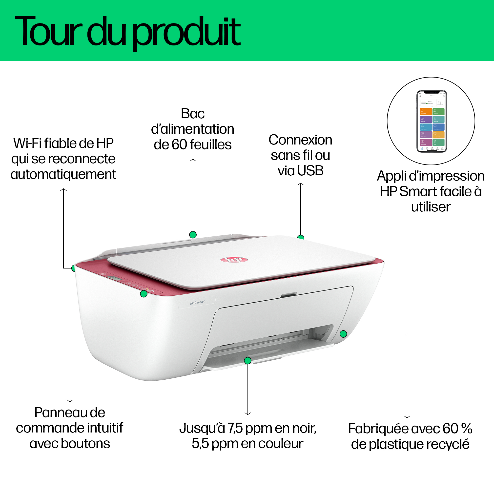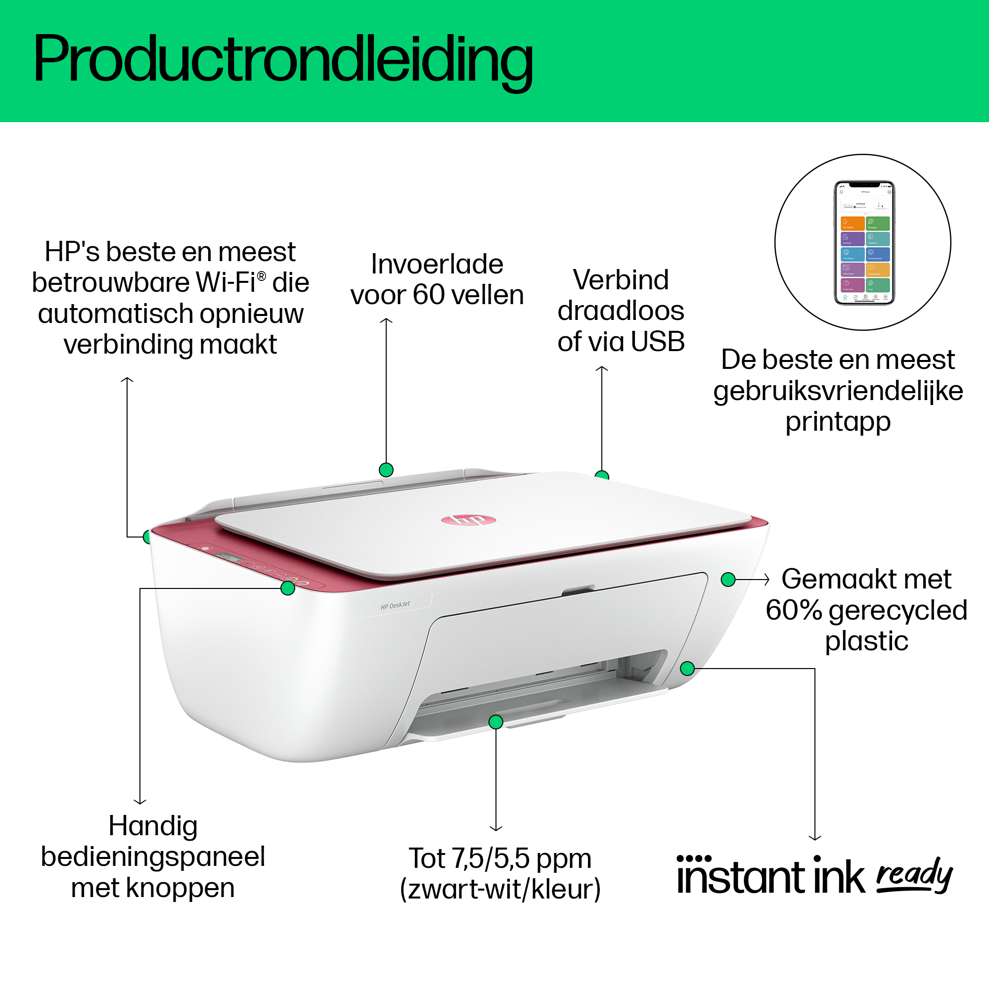 HP DeskJet 2823e Draadloos All-in-One Kleur Printer, Kopieerapparaat, scanner, Thermische inkjet, Afdrukken in kleur, Kopiëren in kleur, Direct printen, Roze