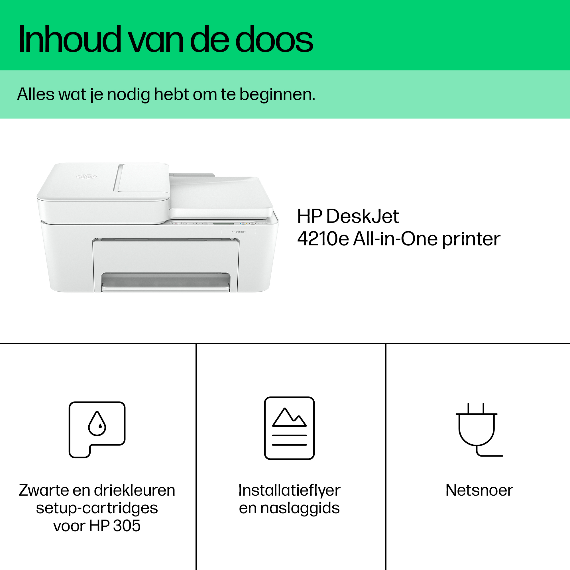 HP DeskJet 4210e All-in-One printer, Thermische inkjet, Afdrukken in kleur, 4800 x 1200 DPI, Kopiëren in kleur, A4, Wit